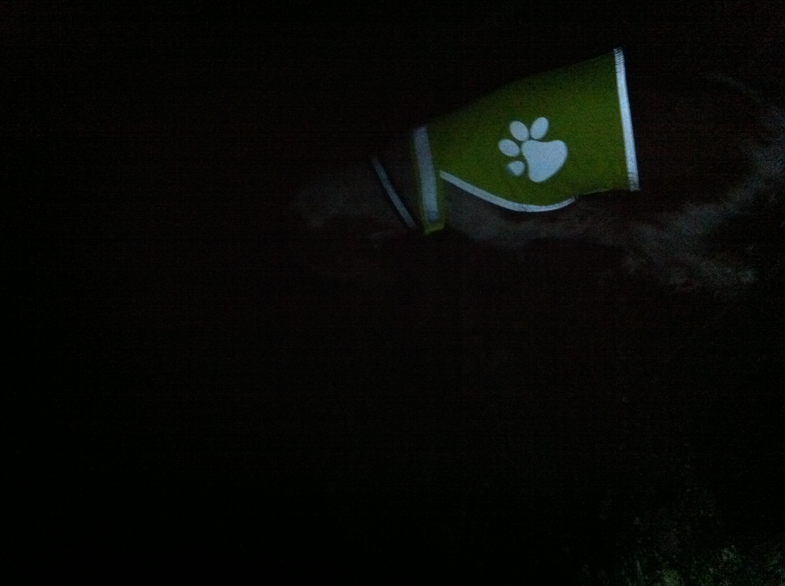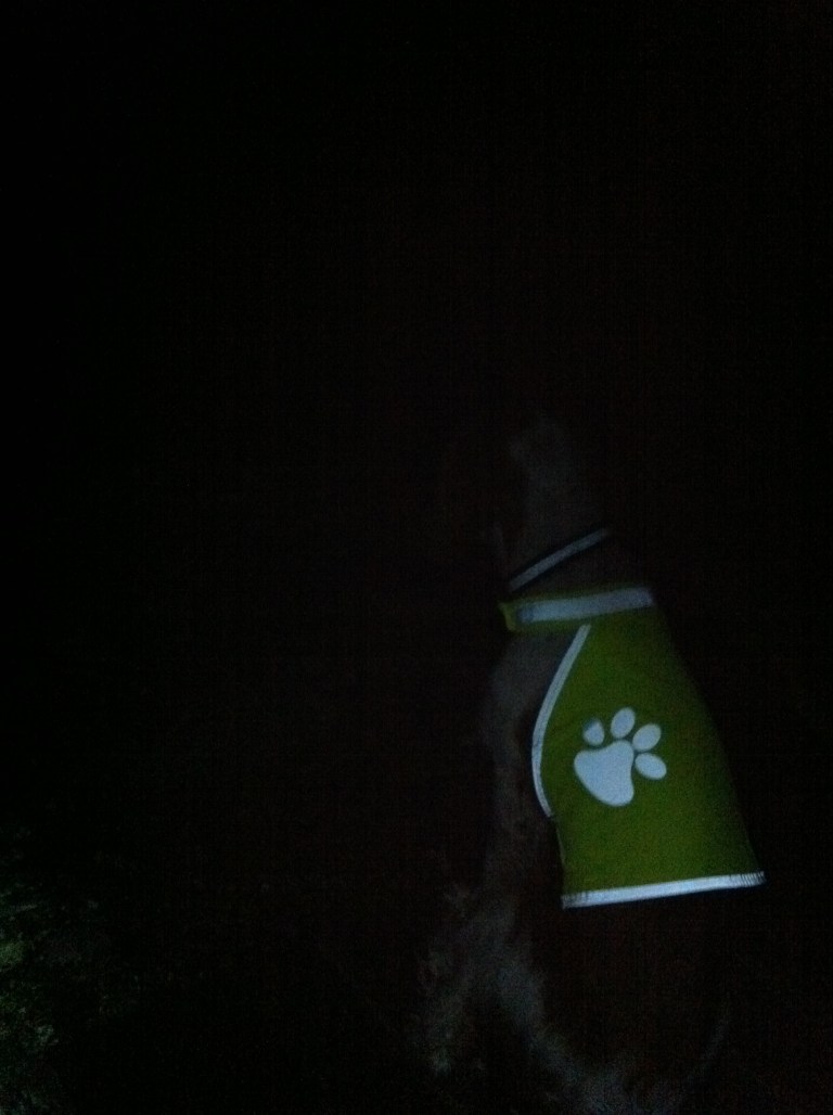 Tillbaka innan det blev mörkt tänkte vi, men hann inte riktigt…. Tur det finns varselvästar för somliga.