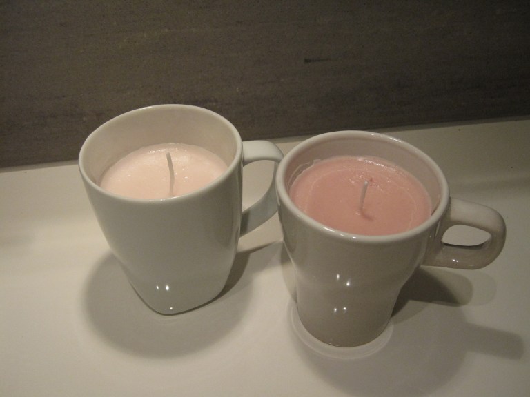 Får inte riktigt till infärgningen. Kunde inte låta bli testa en till med en annan färg, men blev sådär. Kul är det iallafall. Bästa tipset so far är väl att köpa färgade ljus och smälta ner, men det känns ju lite sådär… Skriva något på dem kunde man ju också göra. Nån som har nåt bra tips på sida om att göra ljus?