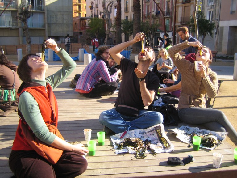 Förde iallafall tankarna till den där gången då jag åt det första gången, precis i början av min bloggkarriär faktiskt (”karriär”?! men vad ska man skriva annars?). Det var min första helg i staden och min roomie Adriana tog med mig och ett par på hennes jobb på en katalansk grej, Calsotada. Grillade små lökar som man doppar i nån slags tomatsalsa. Hur mumsigt som helst.