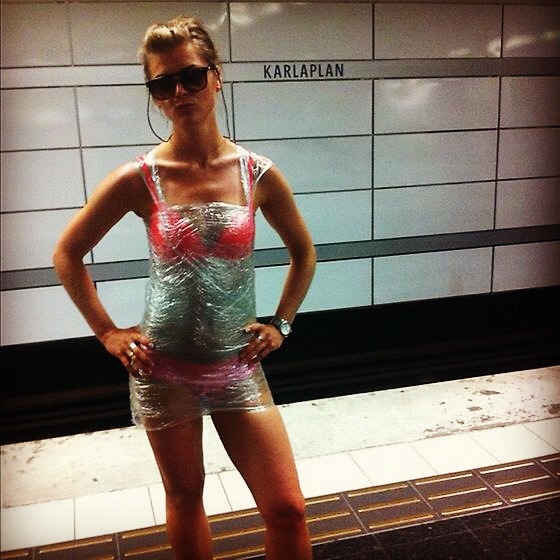Det spontana tog överhanden och en inbjudan till kväll med Lulegäng på fredagkväll och vara med på prideparaden på lördagen övervägde. Outfit-frågan var ett faktum och utan att fundera så mycket slängde jag ur mig en ”vi får väl göra en klänning av gladpack”. Sagt och gjort. Som mina rådfrågade vänner sa: Det är ändå omöjligt sticka ut, gå all in om du ska va med.