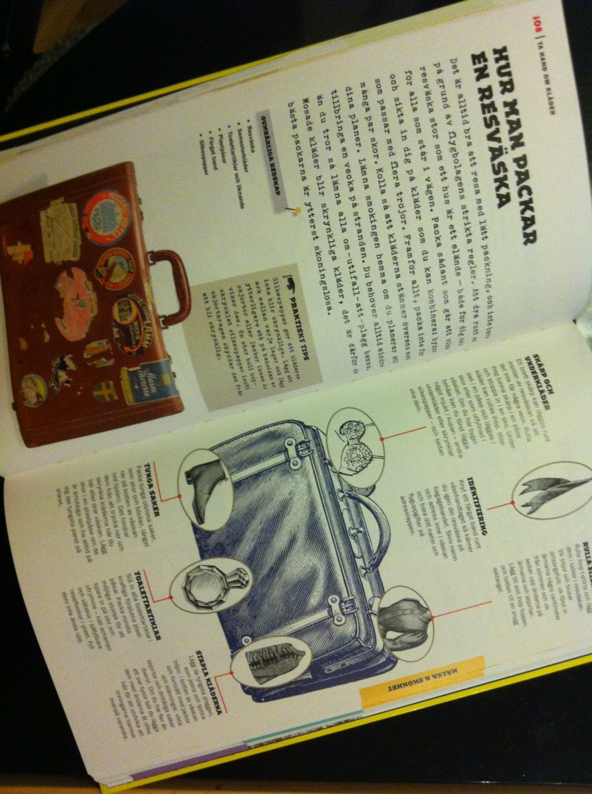 Jag fick en jätterolig bok med allehanda tips när jag fyllde år, bland annat hur man packar en resväska. När Karin Wallén föreläste på reseskrivarkursen berättade hon om och läste samtidigt ur en krönika om att hon ofta blir inkallad som packningsexpert. Kontentan var att det är inte den vana resenären som har passet på rätt ställen eller ser sval och chic ut på flygplatsen utan snarare tvärtom. Det är vi som packar i sista sekunden, inte hittar passet, åker i ”reskläder” och liksom inte riktigt tar det på allvar.Visst kan jag knepen med att rulla kläder men tror ni jag gör det? Försöker tänka att då har jag chans på att få ner ännu lite till på väg hem om jag som vanligt skulle hitta nån loppis…