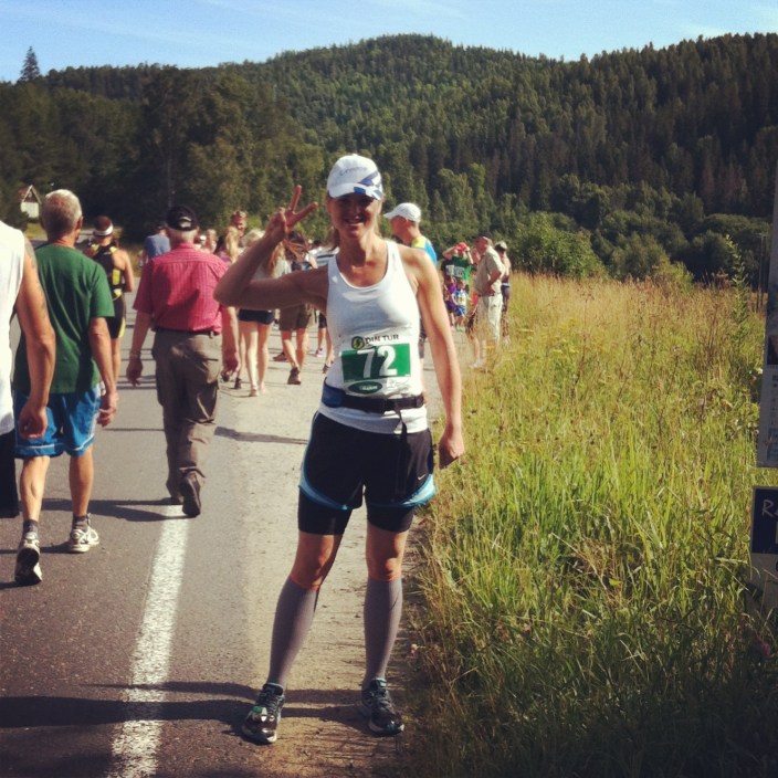 – Hitta löparkompisar! Finns de inte i fikarummet eller vänskapskretsen kanske de finns på facebook. Eller det kanske är en hund du känner. Det var tydligen helt okej att hänga på även om man inte var löpare. Lite som korpen. Och jag har blivit hejad på i varje lopp fast jag varit nästan sist.