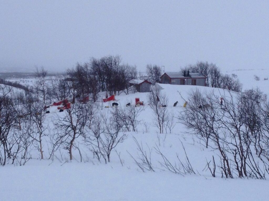plocka ihop och följa efter ner mot de övriga kontrollerna. Mycket hundspann längs Kungsleden och glada åkare som hade lite tungt före.