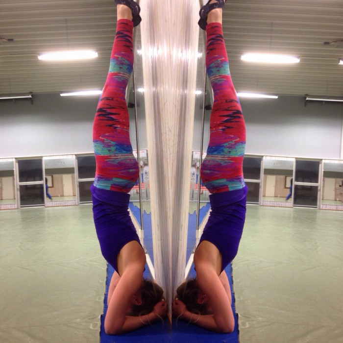 Jag har kört yoga idag. Och lekstuga. Världens bästa mysiga dag igår och idag när det borde varit lilla juldagen med snö och ledighet så har det regnat precis hela dagen och jag har jobbat som vanligt. Sen dags för en timmes yoga alltså och sedan övade jag och Nygren på att stå på huvudet. Fötterna tar faktiskt inte i väggen där på bilden och jag stod flera sekunder. Det mesta går bara man ger sig den på det, och låter det ta tid. Jag kan rekommendera att ha sån här lekstuga med en kompis! Stå på huvudet, armarna, brygga, kullerbyttor och jag kommer hem gnolandes, dansandes och alldeles superpigg!