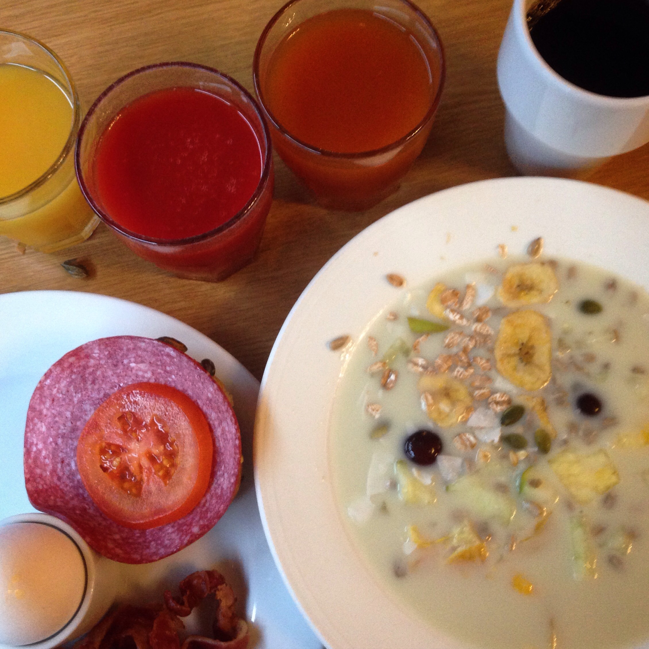 Frukosten? Typiskt svenskt lagom. Rejält utbud men inte så man dånade av beslutsångest. Jag saknade vita bönor i tomatsås men fick min tomatjuice och ett bra utbud av mjölkfria varor.