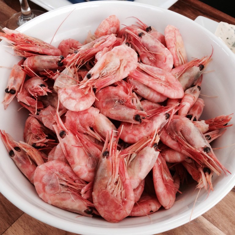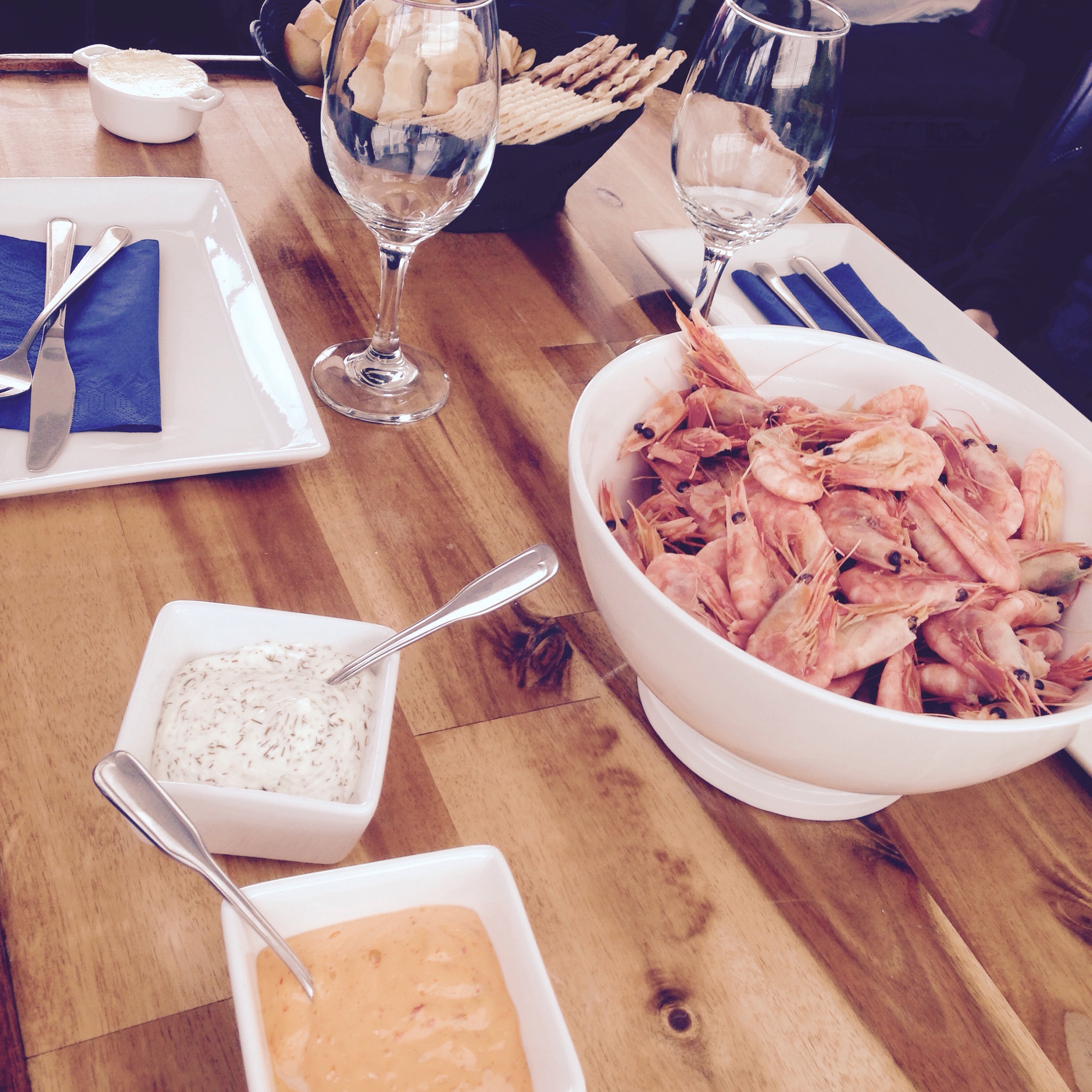 Äntligen har jag också åkt räkbåten! Jag har varit på räkfrossa med mina jobbarkompisar ikväll. M/S Sandskär som båten heter kastar loss från en av restaurangbåtarna i Umeälven, sjöbris, och tuffar nedströms nästan ända ut till havet innan den vänder tillbaka. Under den precis två timmar långa resan fick vi äta så mycket räkor, bröd, dillmajonäs och chiliaioli vi bara orkade. Riktig räkfrossa och jag tror de gick back på chiliaiolin ikväll tack vare mig. Alltid lika trevligt att se en stad från vattnet, och oj så mycket fina stugor det finns!