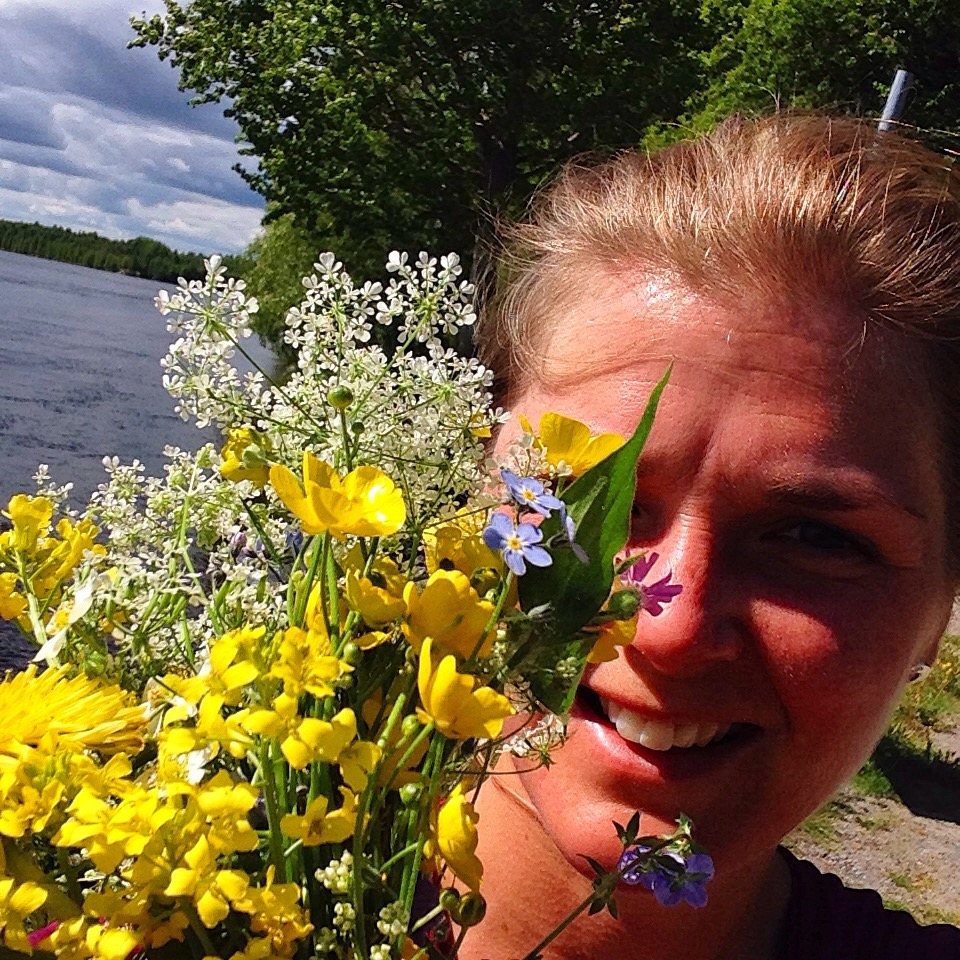 Det blev en fin midsommarafton igår, verkligen superbra väder och det var för varmt att springa i vanliga långa tajts och en t-shirt så kort-snabb-passet blev inte särskilt snabbt men kort! Och sen plockade jag ett helt gäng blommor och yogade och stretchade över en timme på gräsmattan efteråt.