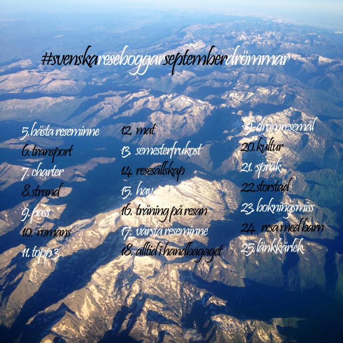 Septemberutmaningen från Svenska Resebloggar är färdig och vi har fått väldigt mycket positiv feedback från alla resebloggare som deltagit och de flesta verkar ha fått mer läsare och kommentarer än vanligt vilket förhoppningsvis betyder att läsarna också tyckt om utmaningen. Nytt tema varje dag och många skriver även om att det varit lättare än de trott och att det här med tema och utmaning sätter igång kreativiteten.