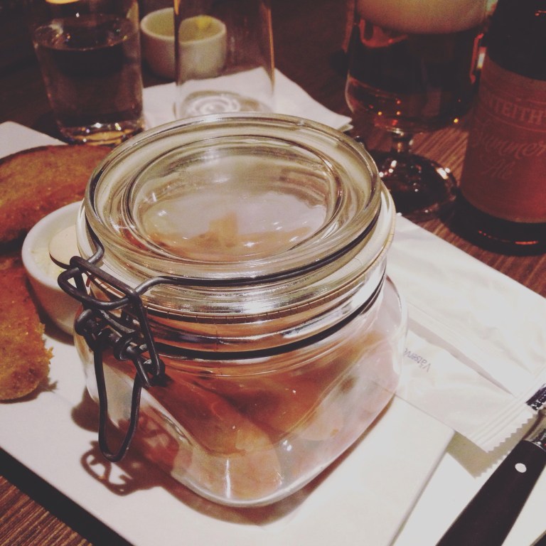 Runt hörnet testade vi, det är första gången för mig. De kör på ”mellanrätter” vilket är ganska små portioner och istället är tanken att man tar flera. Tvyärr kostar de ungefär som en vanlig portion så det är lätt att bli lite sparsam också. Jag åt ”Rökig men inte stökig”, räkor i rök med aioli och surdegsbröd. Gott rostat bröd med ”smör” (de sa åtminstone att det var mjölkfritt så det var väl margarin då) och aiolin var bra. Bäst var när jag öppnade locket till räkorna och det formligen puffade ut rök! Det hade jag inte väntat mig. Riktigt gott, inte så mättande det var ingen överraskning heller. Det tar ju en stund att skala 10-12 räkor så måltiden drog ut på tiden ändå. Riktigt mysig lokal, se till att gå på toaletten om ni är där! Hittade även inspiration på ny typ av blandning av vitt kakel i olika storlekar i olika förband. Samlar på kakelinspiration till badrumsdrömmar.