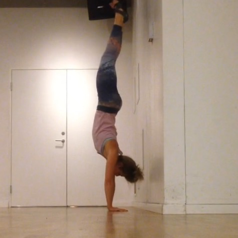 Jag önskar det såg ut såhär, men det är en millisekund bara. Jag vill kunna gå upp och ner från handstående lugnt och kontrollerat. För det måste man vara sjukt stark och modig, men det är långt ifrån omöjligt.
