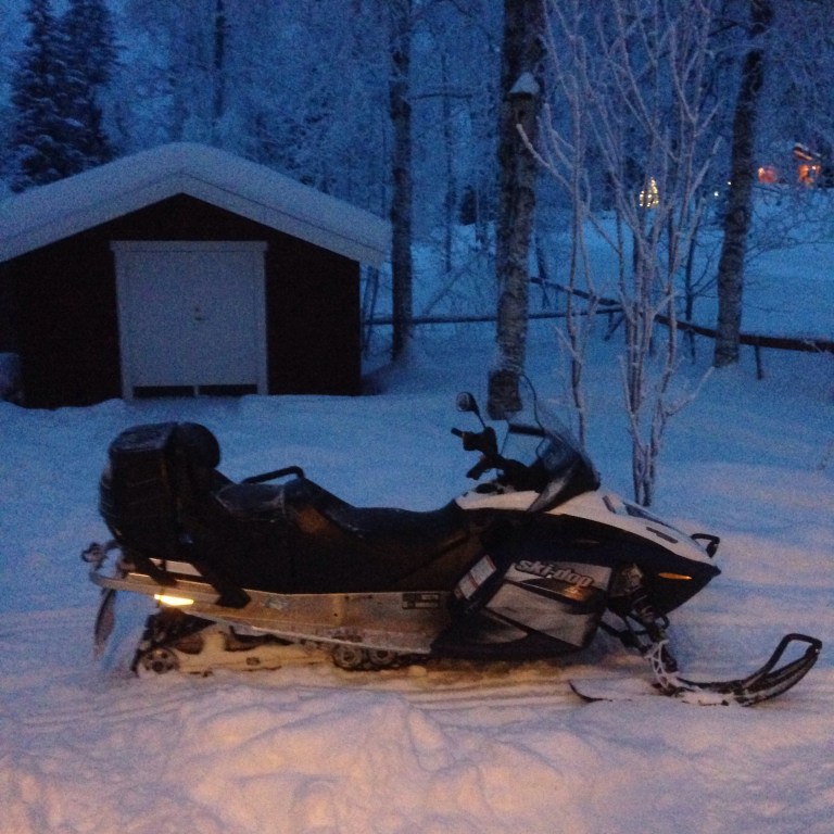 Igår tog jag skotern till gymmet och idag har jag varit till skidspåret och bara parkerade skotern direkt brevid, åkte 7,5 km och åkte sen vidare och tankade och till affärn och köpte spår- och ledkort för både skidor och skoter för säsongen. Lämnade bara skidorna mot skotern och gick in, handlade kortet och mina favoritchips och så ut igen och vips var jag hemma och bastun var eldad och vattnad så nu tar jag skotern ner på raningen till bastun också. Livet på en pinne.