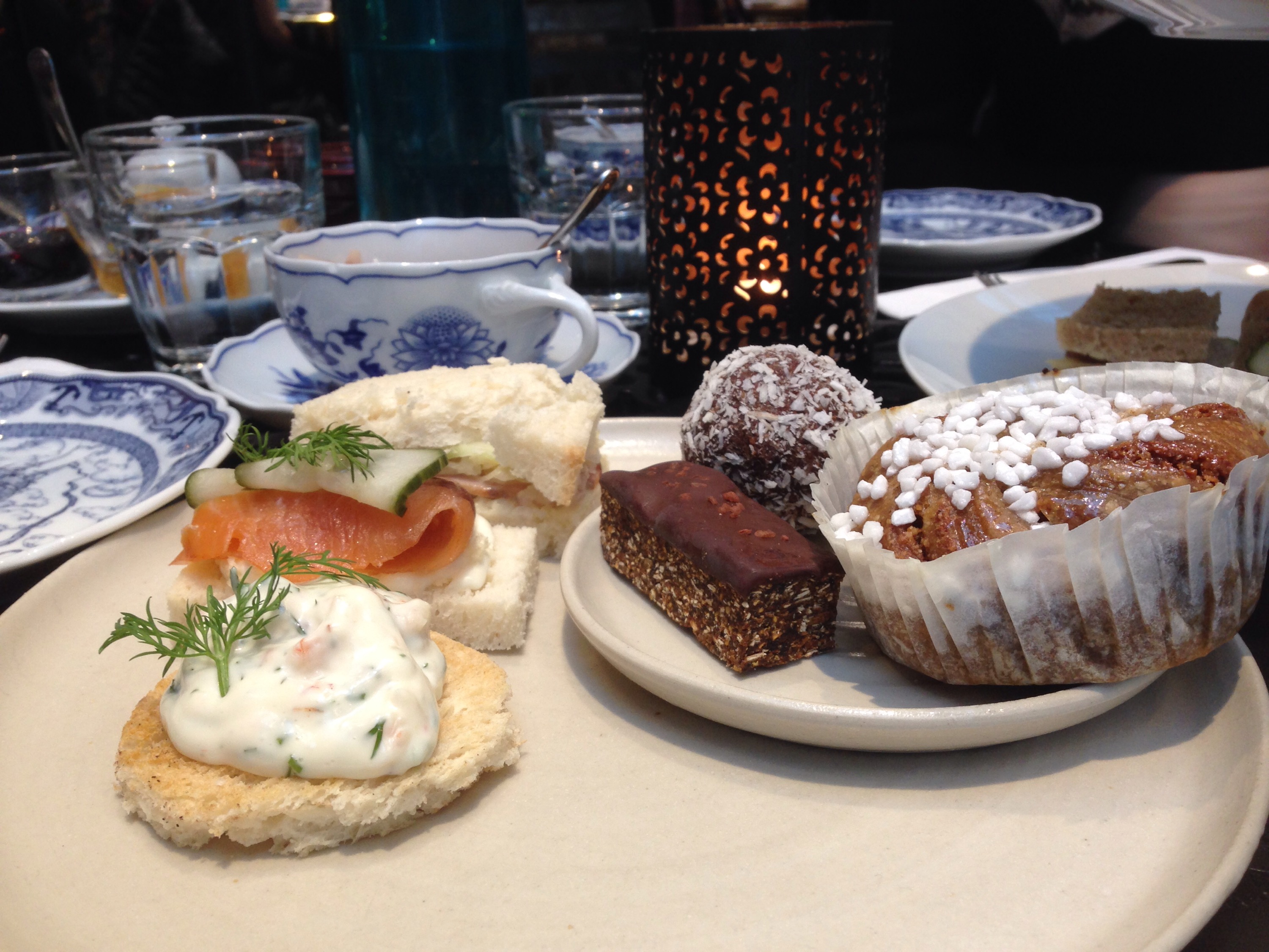 Igår var jag på Gotthards och testade deras koncept ”Afternoon Tea”. Vi hade bokat bord och sagt till om min mjölkallergi (de ber om det på hemsidan eftersom det är ett koncept och svårt fixa på studs annars). Man sitter vid borden ute på innertorget, jättefint dukat och trots att det var rätt mycket folk var det lugn stämning. Riktig söndagsfeeling.