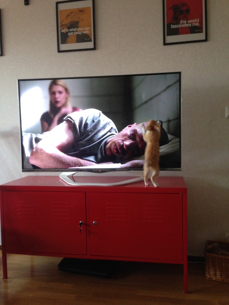 Charlie har upptäckt TVn. Och min magic fjärrkontroll som har en muspekare. Så han har sett homeland i helgen och ikväll en komedi med snygg kille i huvudrollen, bra tidsfördriv men ingen Oscar. Konstaterar att jag borde se på film oftare, en liten löptur efter jobbet så blev jag pigg och precis perfekt avkoppling med film och chokladglass och nu är jag tröttare än trött i god tid.