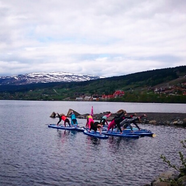 Sen var det klassen jag längtat hela helgen att få prova SUP-yoga. Stand Up Paddleboard, SUP, är som en stor vindsurfingbräda som är rätt stabil och till det en paddel. Testade förra året på Lanzarote men då paddlade vi bara runt lite. Idag var det ett yogapass. Några ramlade i men jag klarade mig och jag fick njuta av utsikten över åresjön och fjällen runtomkring på ett kluckande ganska vindstilla vatten till rytmen av mitt eget andetag. Magiskt!
