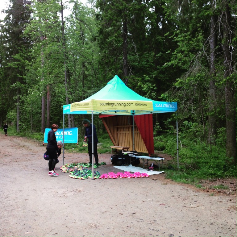 Jag flyttade i mina sulor, lätt byta ut, och drog iväg (först jag fick fylla i mina kontaktuppgifter så jag inte skulle dra iväg för gott, han visste uppenbarligen inte hur mycket jag älskar mina egna skor) Kände direkt att de satt skönt ovh jag fick ett bra löpsteg, jag ”kom upp” insteget. Jag sprang vad som tydligen kallas ”almenäsintervaller”, 10x1min och det var riktigt härligt att dundra på med bra grepp. Jag sprang 3,1km-rundan med avstick på stigar både för själens skull och för att testa skorna. Så, en liten utvärdering:
