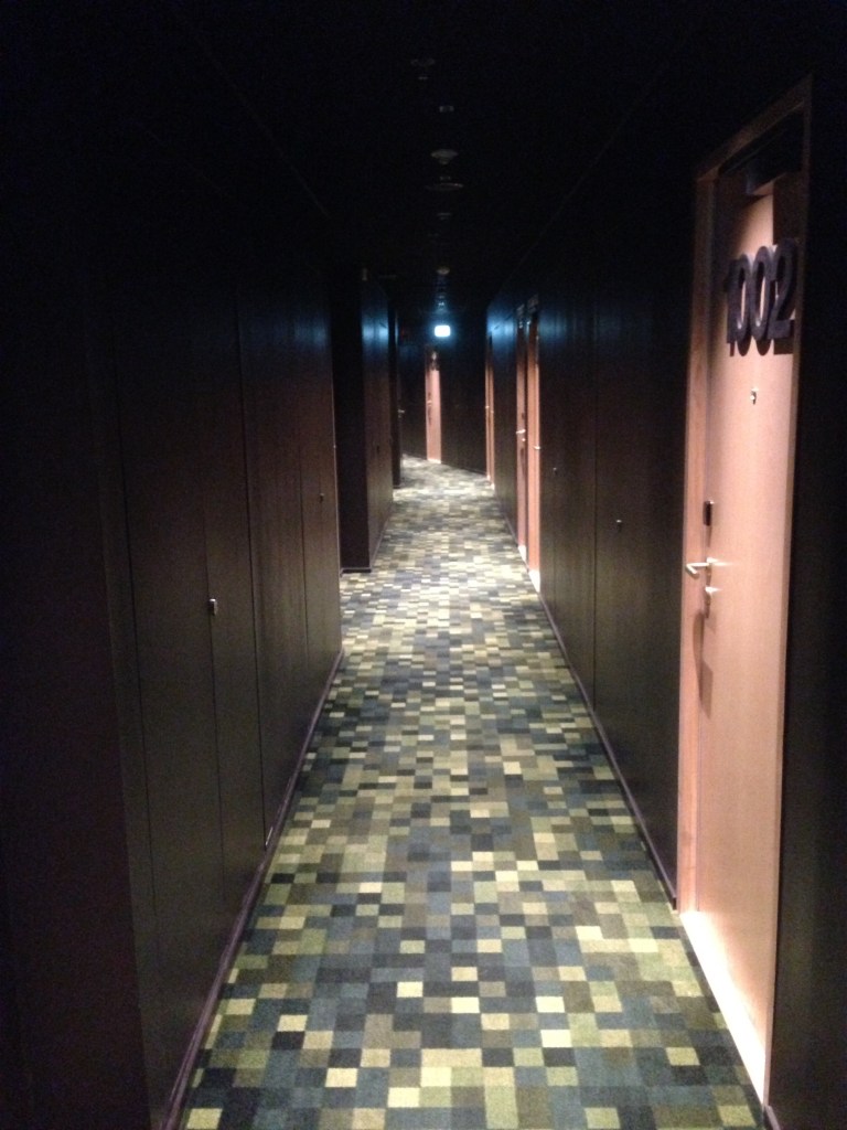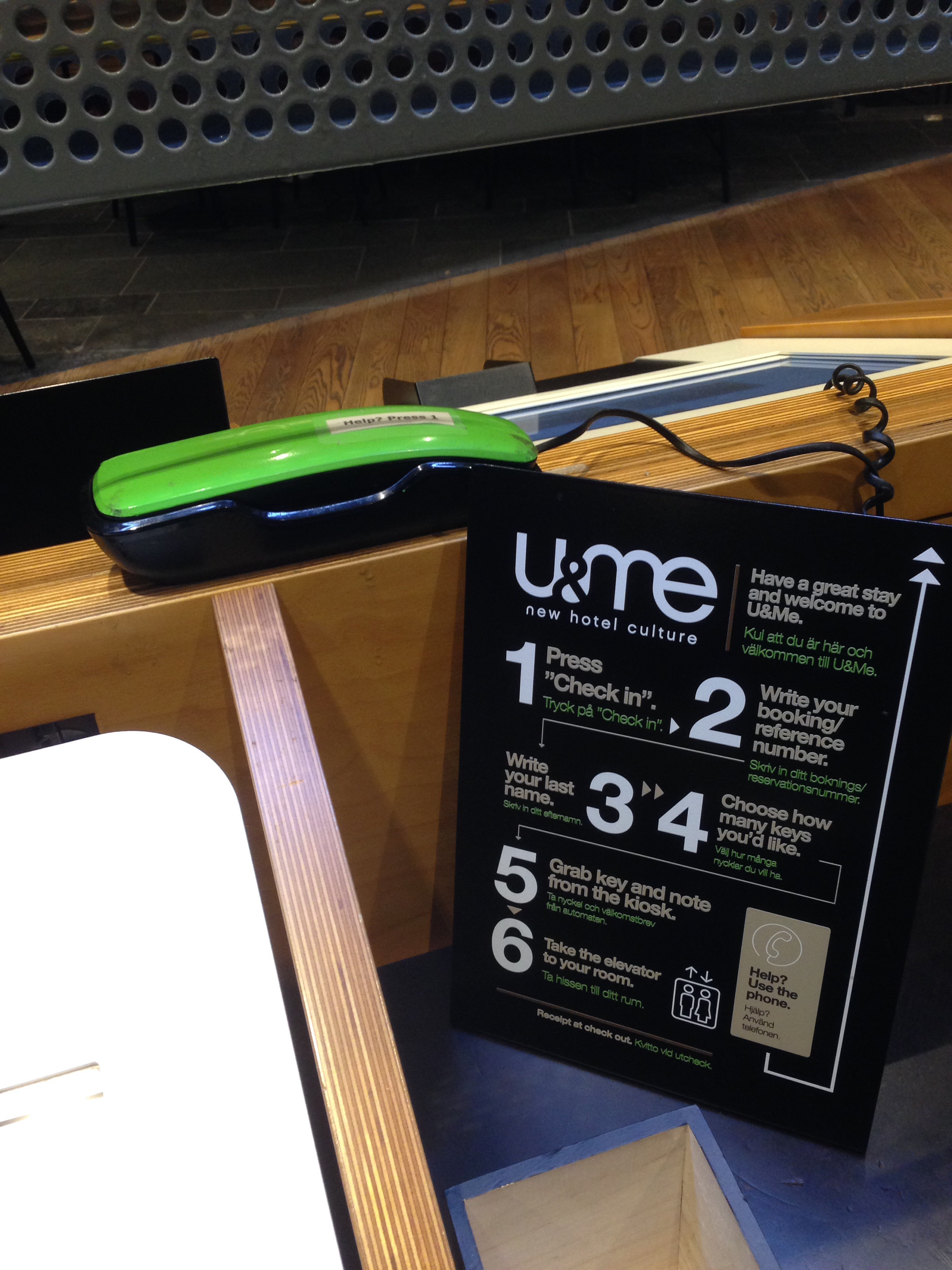Det lyckades nästan. Automaten hittade inte bokningen så jag fick ringa på hjälptelefonen. En riktig telefon. Smidigt faltiskt, är det nån gång det ska jäklas så har en ju garanterat slut batteri i sin mobil också. Fick hjälp direkt och bokningen var på riktigt och ut printades två nyckelkort medan vårt rumsnummer visades på skärmen.