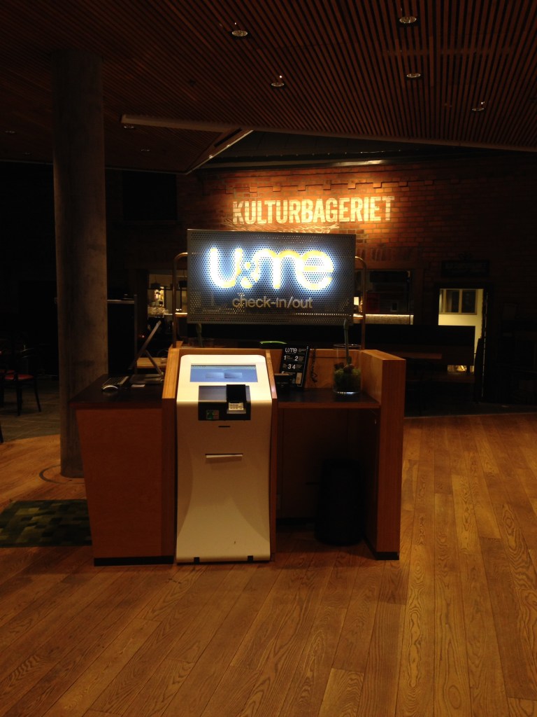 Så var vi incheckade. Towes plan blev försenat så under tiden cyklade jag till hotellet och checkade in oss. Vi bor på U&Me och det är ett ”self service -hotell” vilket betyder att de är utan reception och istället har en incheckningsautomat som finns på flygplatser.
