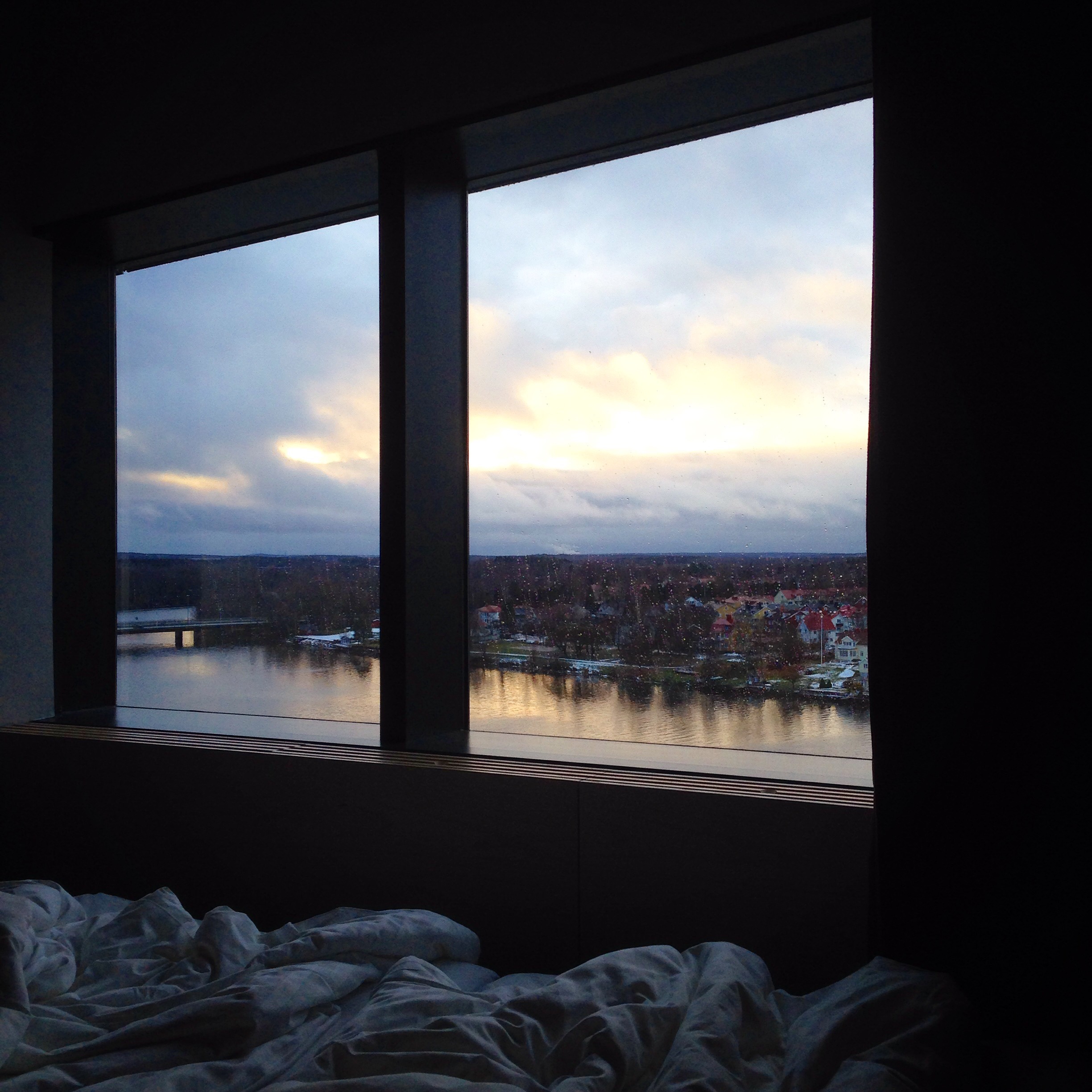 Efter lunch, strosande och massa shopping gick vi tillbaka till hotellet och vilade fötterna på sängen och blicken på utsikten sippandes på en take away-kaffe och lussebullar.