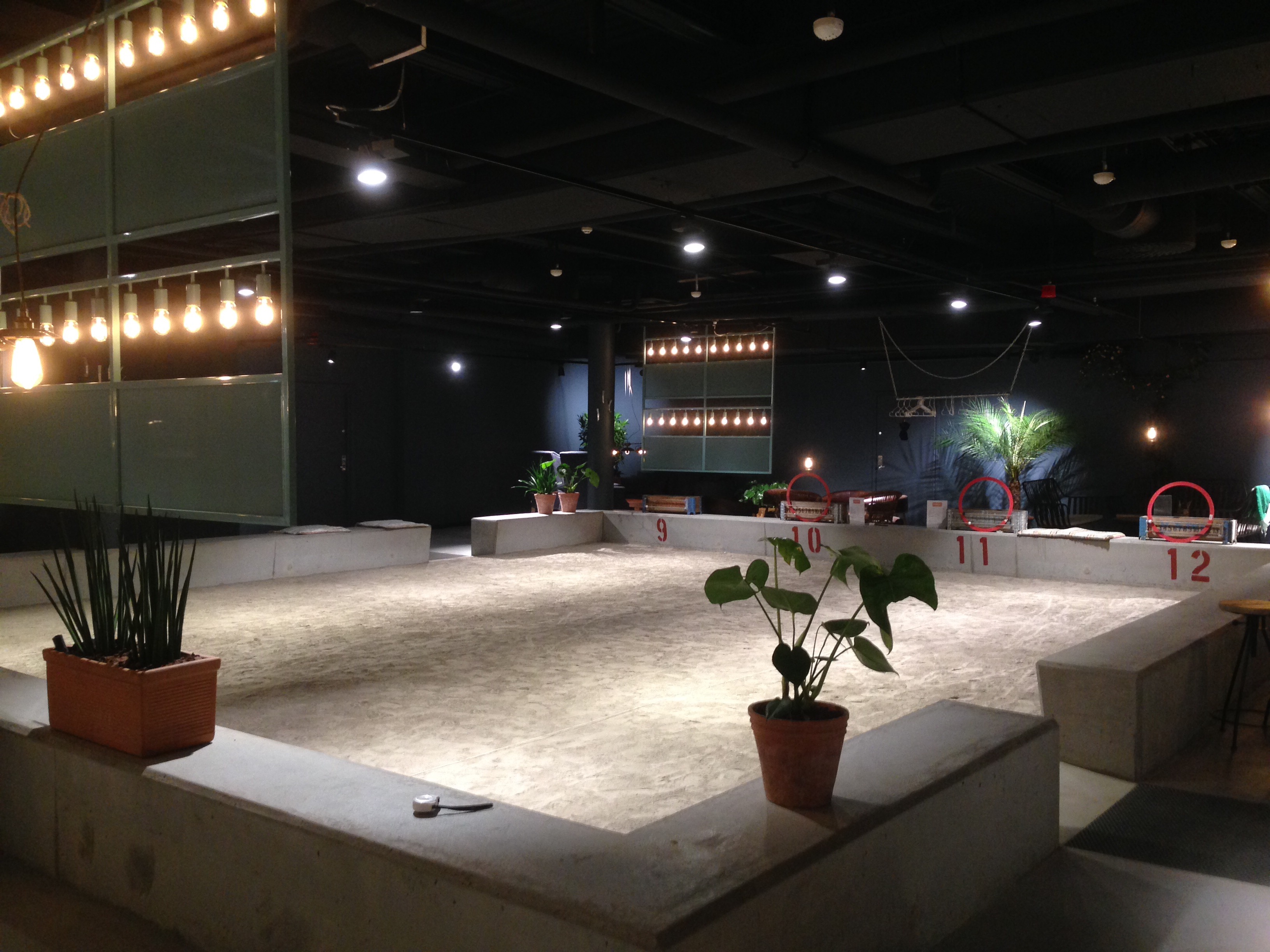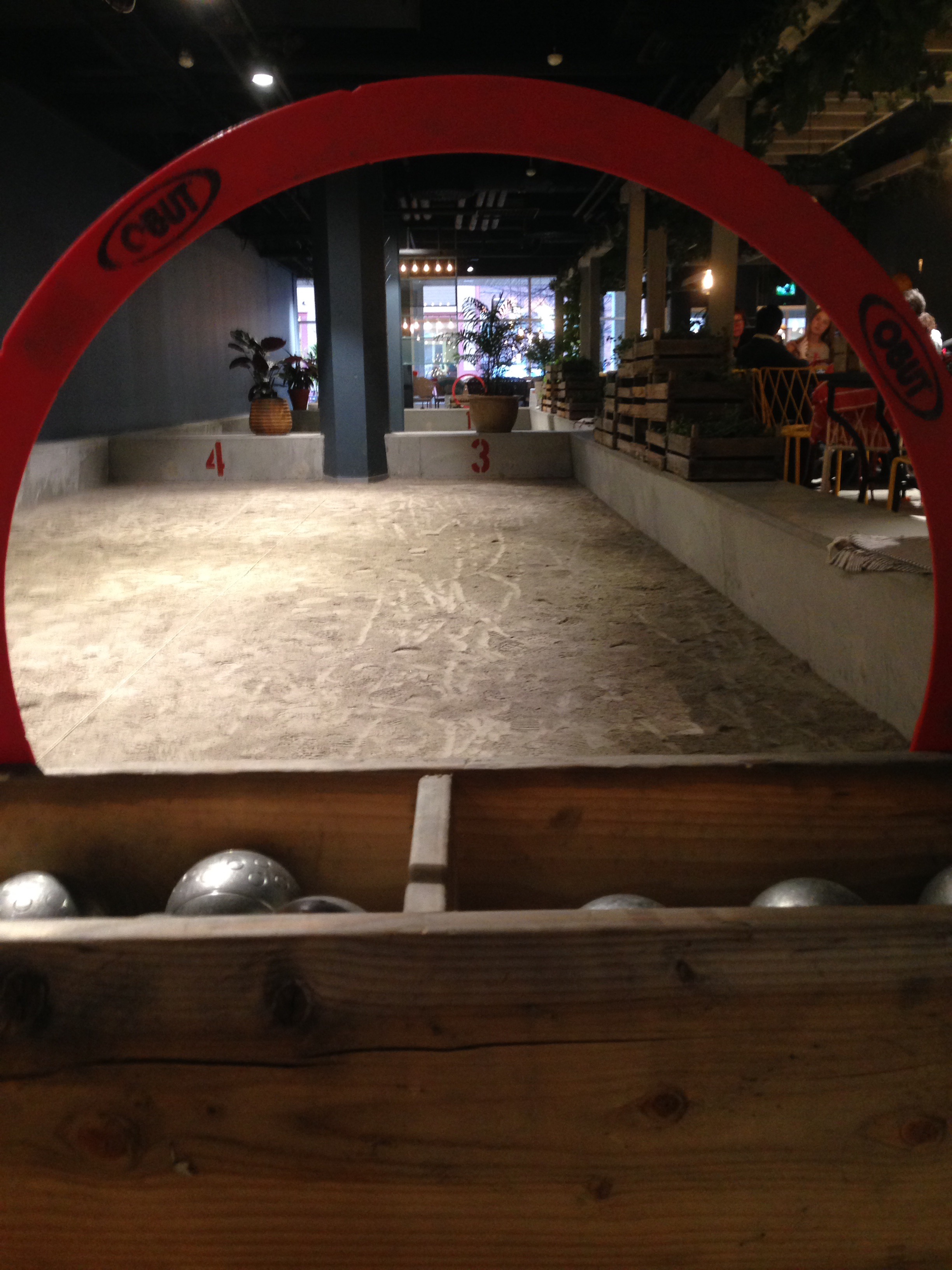 Vi skippade boulen när vi väl hade ätit men det ser trevligt ut när det är gäng som spelar och lokalen klarar det fint, åtminstone där vi satt ut mot gågatan kändes det inte ett dugg stökigt eller högljutt för att äta.