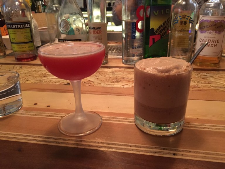 Vi avslutade kvällen tillbaka i Väven i Duås delikatessbutik som på kvällstid tors-lör förvandlas till bar. Vi skrev upp oss på listan och det dröjde inte mer än en knapp halvtimme innan det ringde att det fanns plats till oss. Temat just nu var musikalbum och varje drink var två artister eller album kombinerat på deras tokiga vis. Jag beställde den första drinken på listan som var lite lättare och på frågan ”är det hallon i?” fick jag som vanligt på det här stället ett helt underbart typ 10 minuter långt svar i stil med melodikrysset (hipp hipps version). Towe tog en Nevermind the wall och det var tequila och chokladfluff som inte gick av för hackor. Perfekt avslut på kvällen!