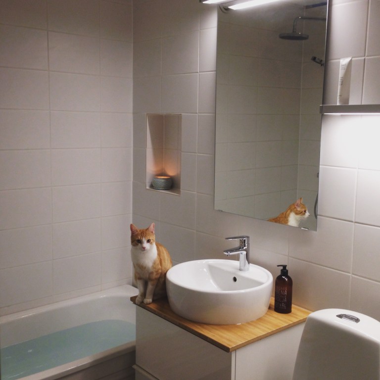 Äntligen! Badrummet är invigt och nu återstår bara detaljer som jag tack och lov inte ska göra själv. Är riktigt nöjd men det känns jätteovant och konstigt så känslan är att använda det så lite som möjligt så det håller sig… Som om de kaklat med kristyr. Lägger upp mer bilder sen där ni får se förebilderna också.