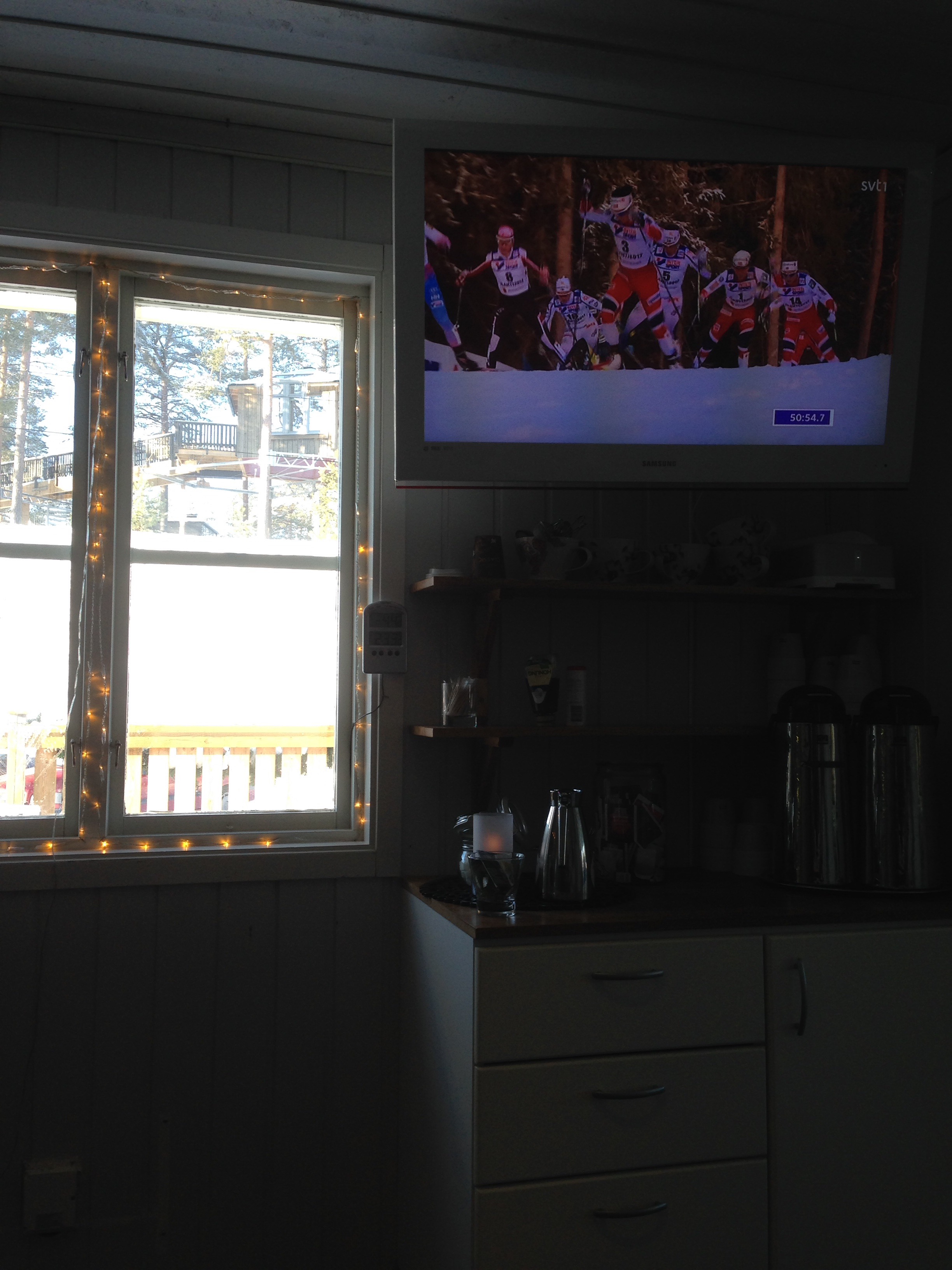 I receptionen visade de skidorna och jag gick dit för att få senaste nytt och lite Vinterstudioninjektion på såväl 3-milen på lördagen och Vasaloppet och 5-milen på söndagen. Ser ni genom fönstret? I en sån koja sov jag! Mer bilder kommer framöver.