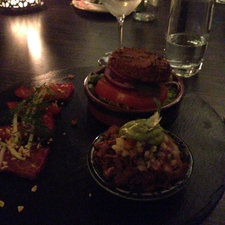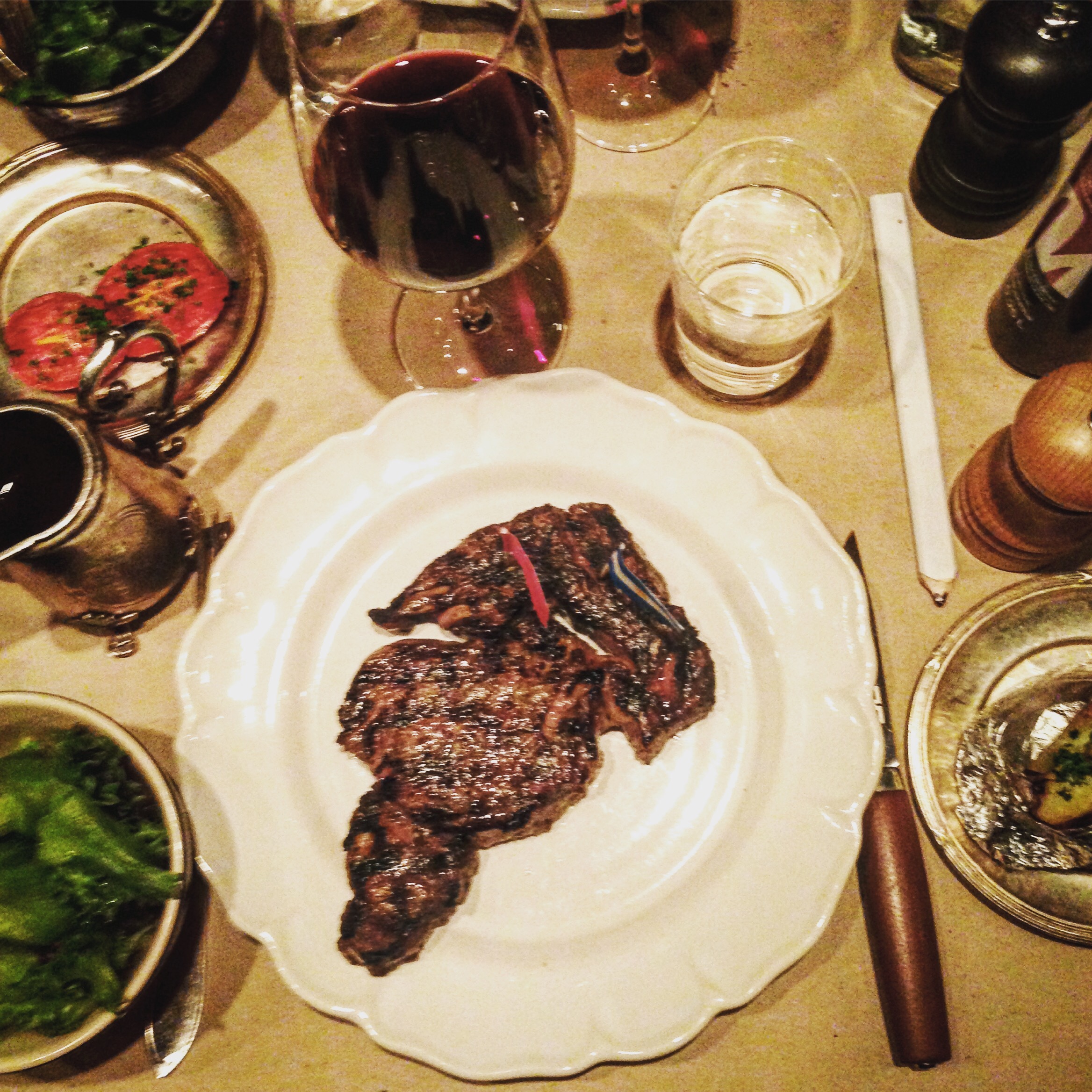 På fredagen flög jag ner till Stockholm och åt jag kött med Josse på restaurang AG rätt nära där de bor, supergott kött med fräscha tillbehör. Lite suddig bild tydligen, men speglar ungefär hur proppmätta och trötta vi blev innan vi traskade hemåt kring niotiden och stupade i säng.