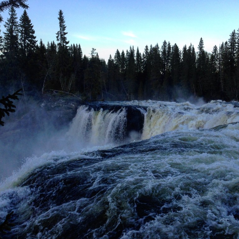 Jag bodde inte på Holiday club den här gången utan hos min kompis Stina som flyttat till Åre, både bra och dåligt. Kul för henne och bra när jag är där, men synd på Umeå liksom. Det lyxiga med att bo hos någon local är att få se lite mer av Åre. Fredagkvällen var så fin så de tog mig med på lite sightseeing och såg Ristafallet. Ovanligt mycket vatten tydligen! Det ligger ca 1 mil från Åre på vägen tillbaka mot Östersund och är jättelätt att ta sig till. Parkering alldeles intill så väldigt tillgängligt, den här kvällen var vi dock själva.