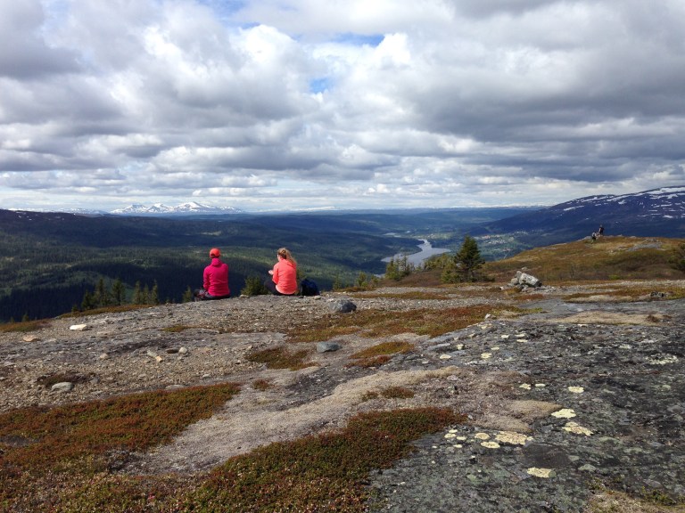 Vi gick upp på toppen av Totthummeln på söndagen och njöt av utsikten över hela Åresjön och åt alla håll. Fjärde gången gillt och jag börjar lära mig fjälltopparna. I fjärran ser ni tre stora toppar. Det är Getryggen, vid vars fot Storulvåns fjällstation ligger, Tväråklumparna Sönner och Norder samt Storsnasen, där min kusin jobbar i trädgården nedanför i Enaforsholm!