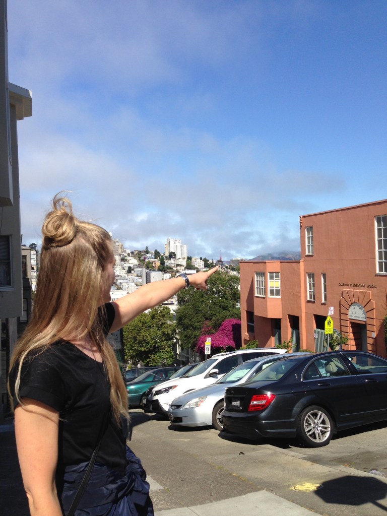 Jag är i San Francisco, resan gick jättebra och jag kom fram till ett soligt San Francisco och hade tänkt check in men det gick inte, mitt namn var inte på bokningen så det var bara att lämna väskorna och bege mig ut och vandra. Började med Lombard street, den krokiga där det bara går köra max 5 km/h. Otrolig utsikt därifrån! Gick vidare ner mot hamnen och insöp atmosfären och mötte sen upp Maria och Elisabeth och stupade isäng.