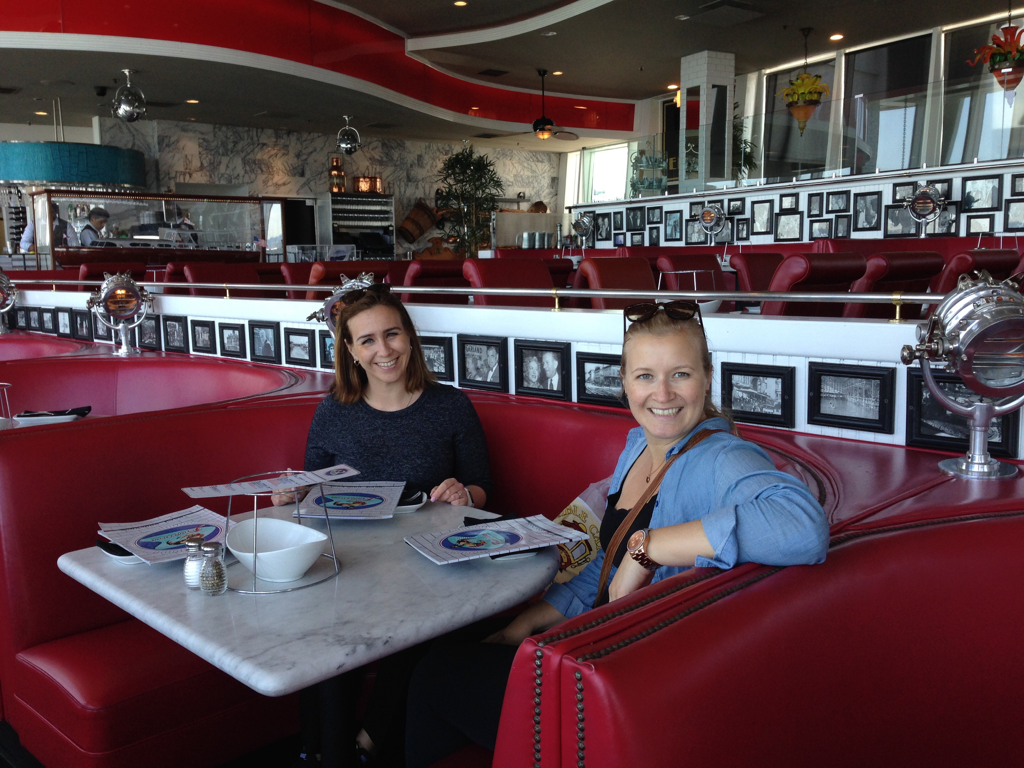 Pier 39 är som en liten miniby av restauranger och souvernirshoppar. Vi åt lunch på en diner med seafood, jag åt en swafood pasta, Maria åt fish and chips och Elisabeth åt den lokala specialitén Clam chowder (krabbsoppa i ett bröd som skål)