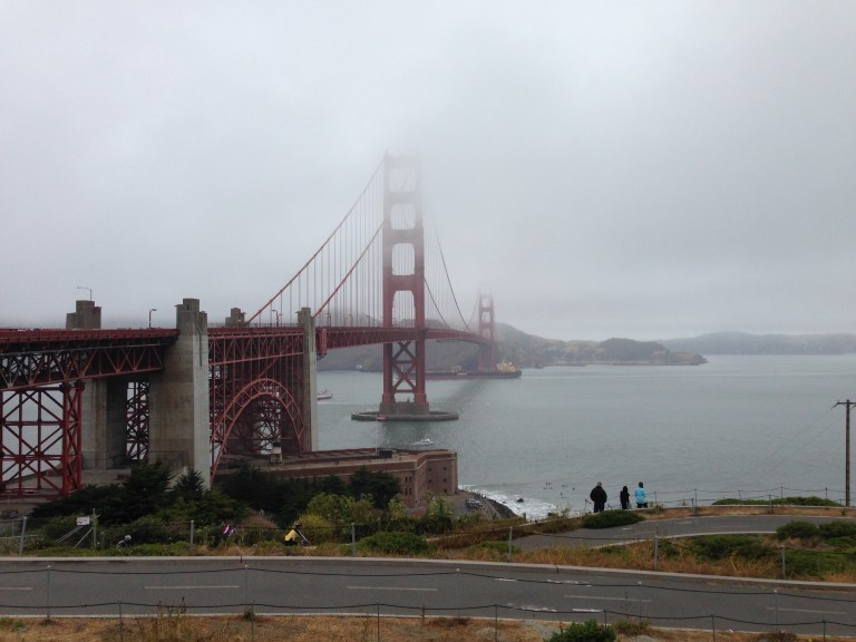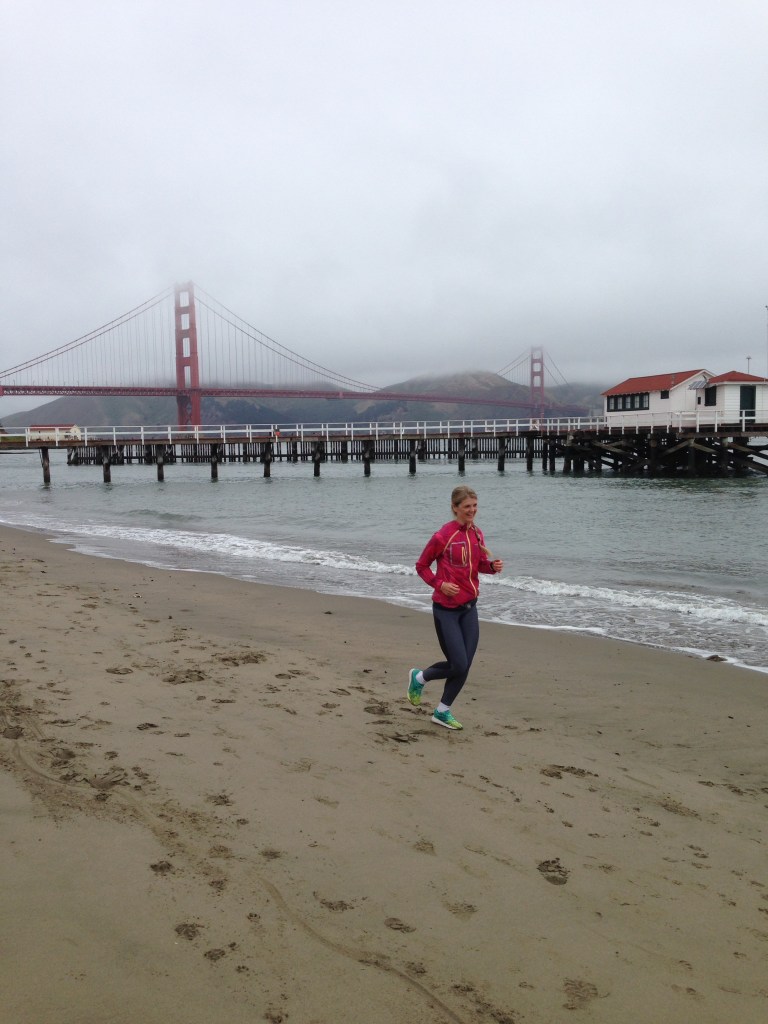 Dag två började vi med att ta en Uber (som taxi fast smidigare) till Golden gate-bron. Sen sprang vi över den och tillbaka, det var en mäktig känsla! Den är 2,7 km lång så det är lagom för jogg, gång eller cykel i alla nivåer. Sen sprang vi en bit tillbaka längs stranden och jag kände mig som Rocky!