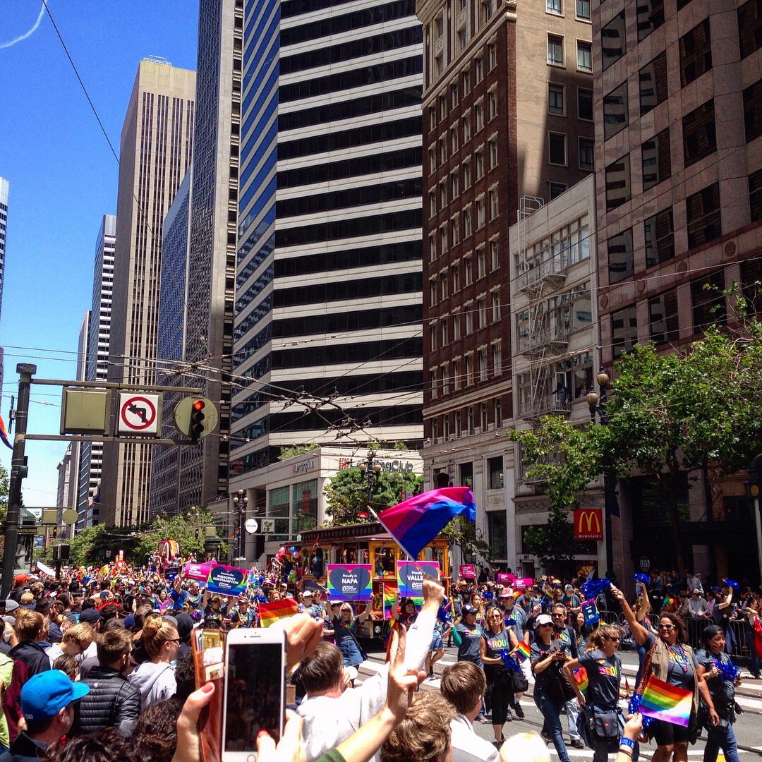 Eftermiddagen spenderades med att titta på årets prideparad som vi inte hade nån aning om att den skulle vara. San Francisco är en slags gayhuvudstad sägs det, så den är väldigt stor. Jag har sett prideparader förut och även gått med en gång för att stötta några vänner och jag blir alltid lika rörd. Det är sån glädje!