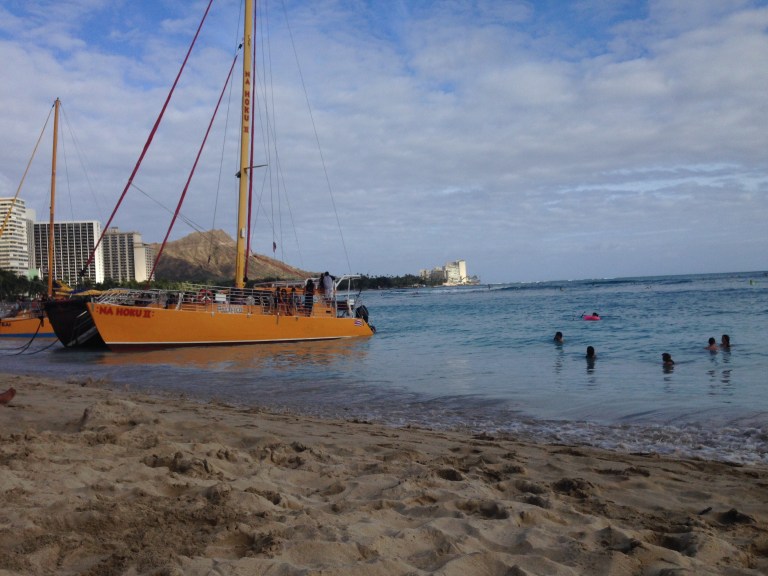 Vi började med att kolla in den berömda Waikiki beach, inte så stor faktiskt men den ligger väldigt centralt bland höghus med butiker och restauranger.