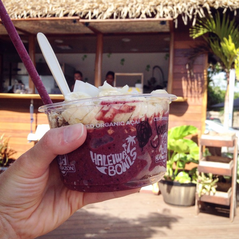 Här har vi en açai bowl igen, denna gång som mellis och det tyckte jag passade bättre! Haleiwa bowls i Haleiwa, där en stor surftävling går varje vinter. Självklart kollade vi in den stranden också.