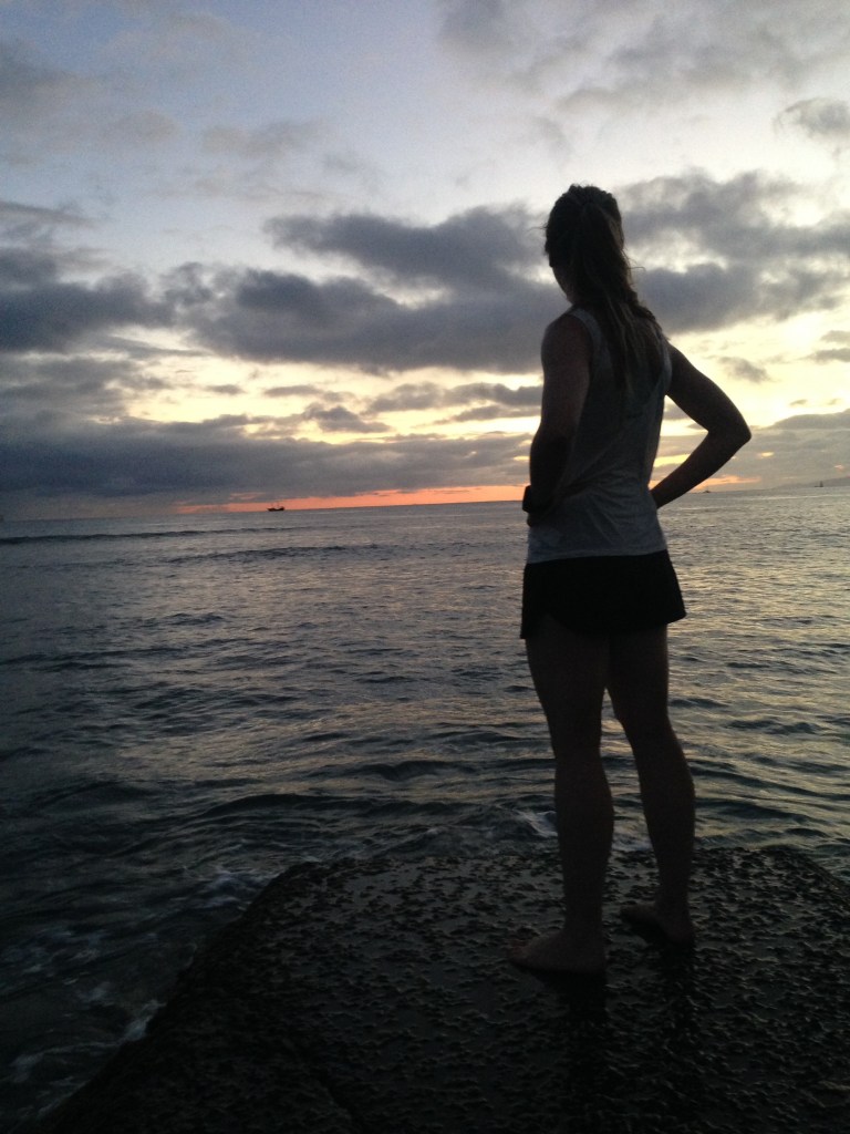 jag tog en kort löptur barfota på Waikiki den innan middagen på lördagkvällen, såå underbart!