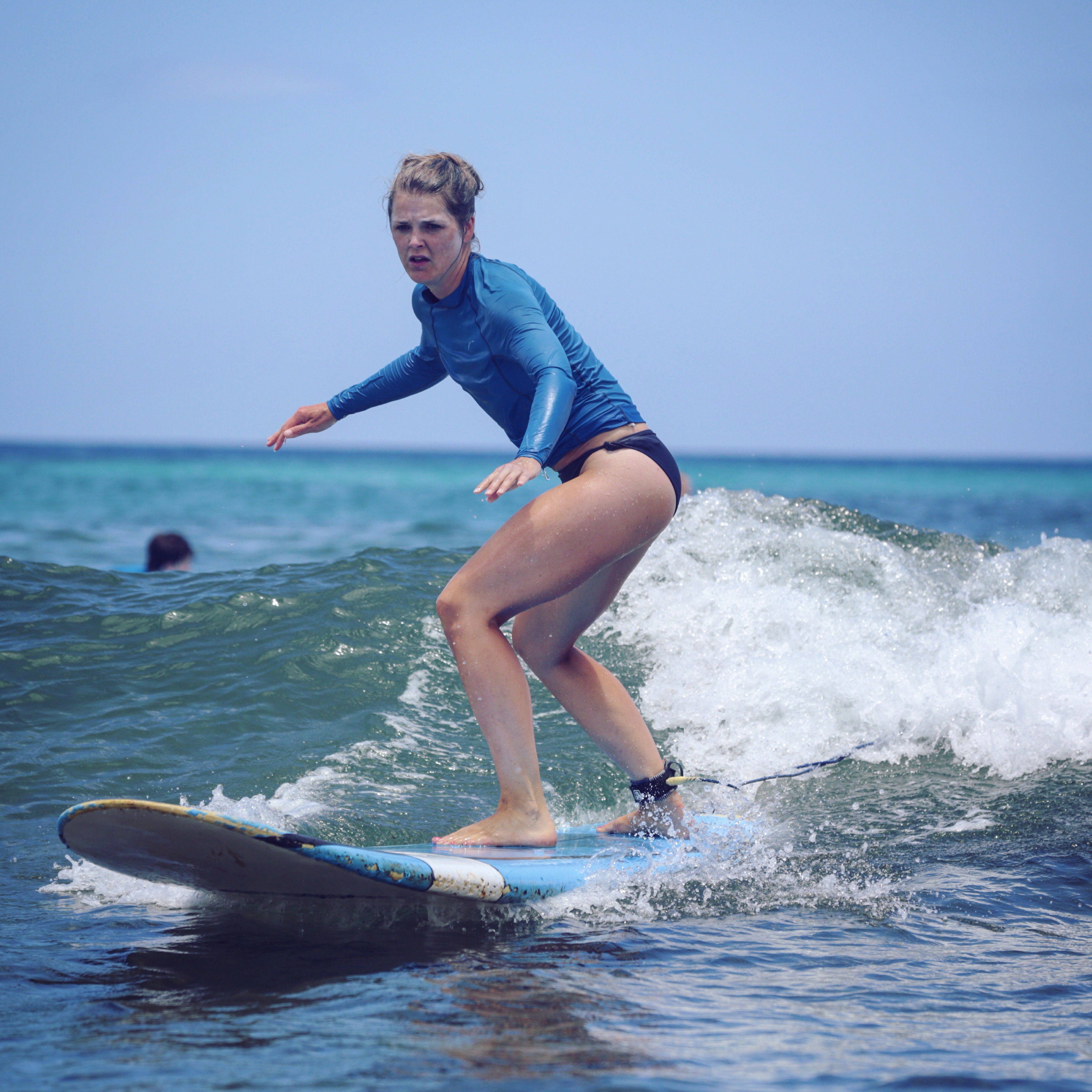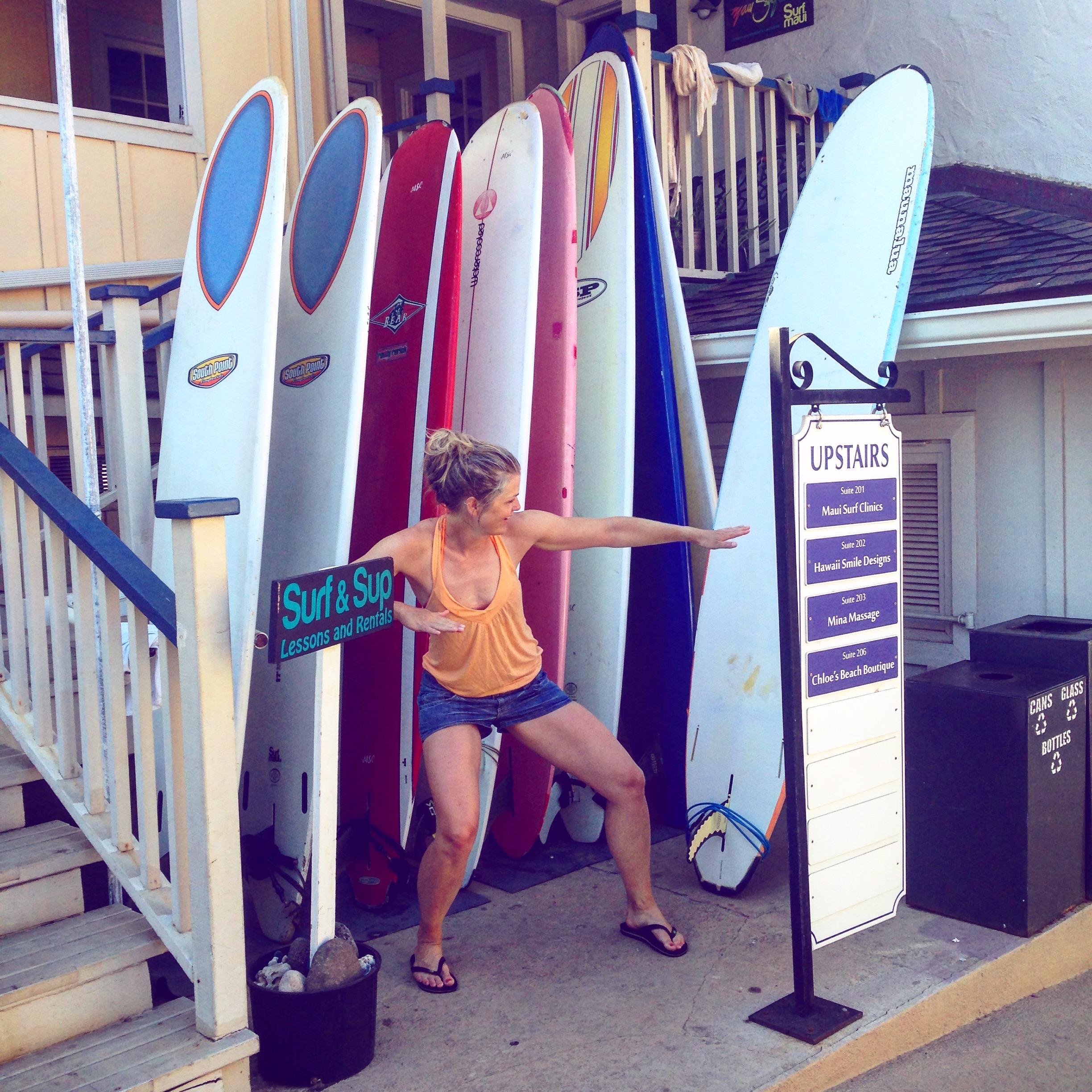Dags för surf! Vi åkte till den fina lilla staden Lahaina igen och testade surf hos en surfskola som startades av en kvinna för många år sedan. Kul att höra om kvinnliga surfare och entreprenörer, det är mest bara Duke och ”the waikiki beachboys” det står om överallt annars. Det var hur kul som helst! Trodde aldrig det skulle gå att ens komma upp på brädan på första försöken men det gick. Vi tog en lektion tillsammans och var efter några uppvärmningsövningar och instruktioner på land ute i nästan två timmar.