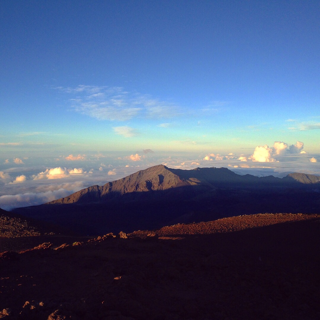 Väl uppe i god tid för att se kratern och utsikten och sedan solnedgången. Det är så högt att det ofta är ovanför molnen och en klar dag kan man se ända till Hawaii the big island.