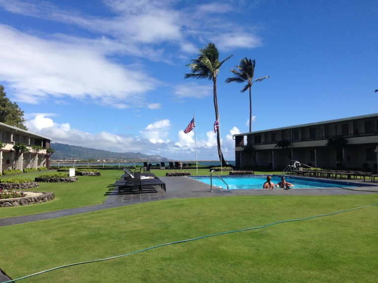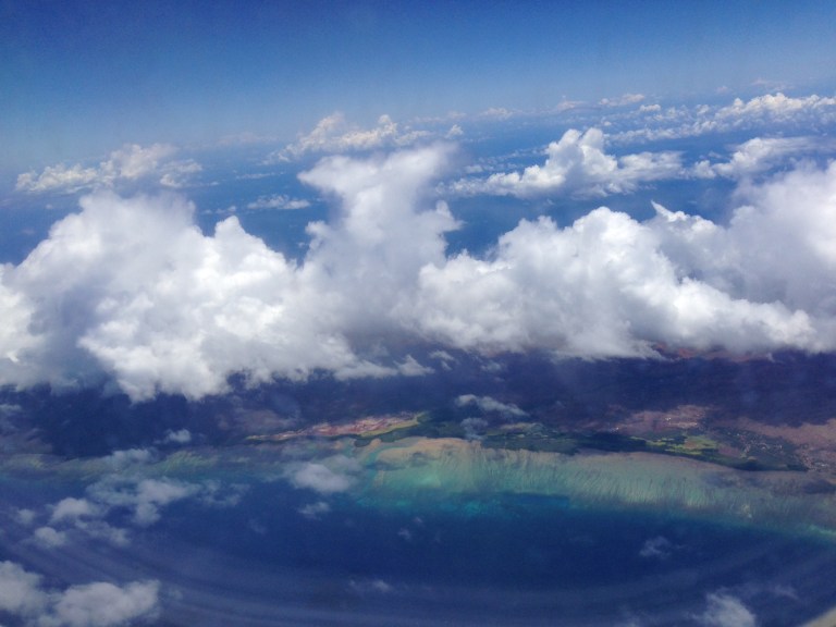 På onsdag har vi resdag igen så vi äter den goda hotellfrukosten och packar ihop, läser en stund vid poolen och åker till flygplatsen. Det tar 10 minuter. Flyget är lika kort som anligt och här flyger vi över Molikai på väg mot Oahu. Kul att se öarna från ovan.