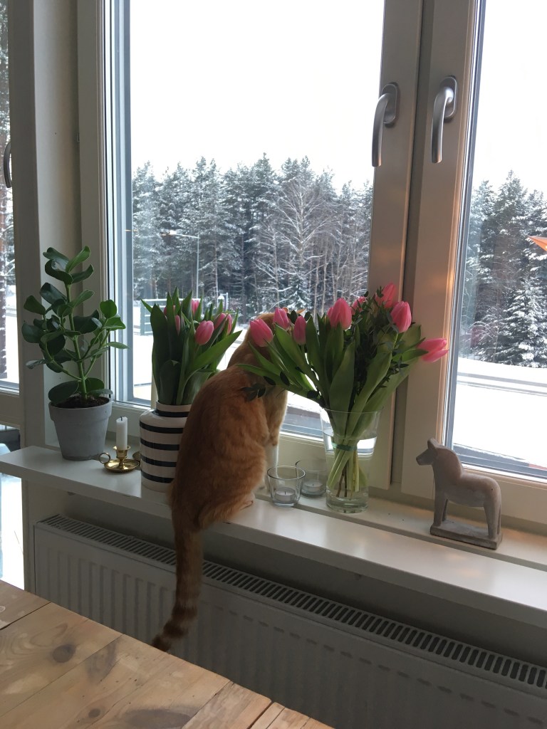 Kvällen blev hursomhelst supertrevlig och maten smakade bra, till efterrätt och istället för tårta hade jag gjort vegansk kladdkaka som jag lyxat till med färska jordgubbar till mitt i vintern. Jag fick några fina presenter som jag önskat mig och så avslutade vi kvällen med att spela en omgång vagabond. Roligt resebetonat spel men med alldeles för krångliga regler. Dan därpå sov jag ut och åt frukost länge och njöt av alla tulpaner jag fått.