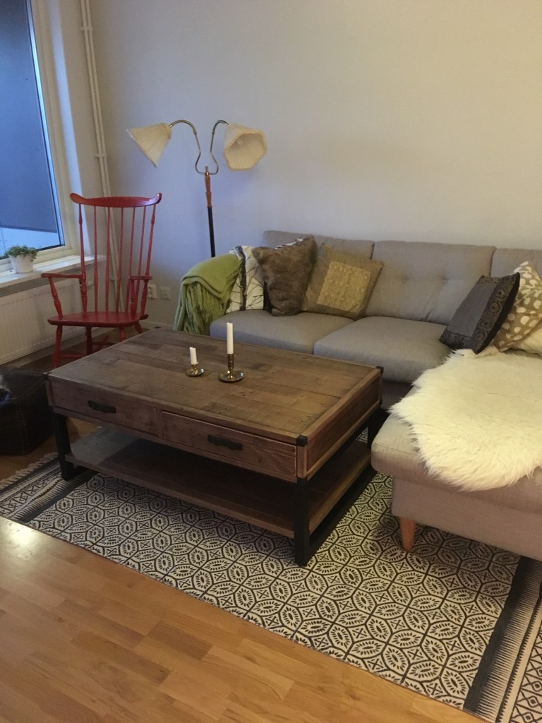 Jag åkte och hämtade ett soffbord jag beställt från Mio, det är gjort av återvunnet trä (priset tyvärr inte som att det var gjort av begagnade möbler) och jag älskar det.