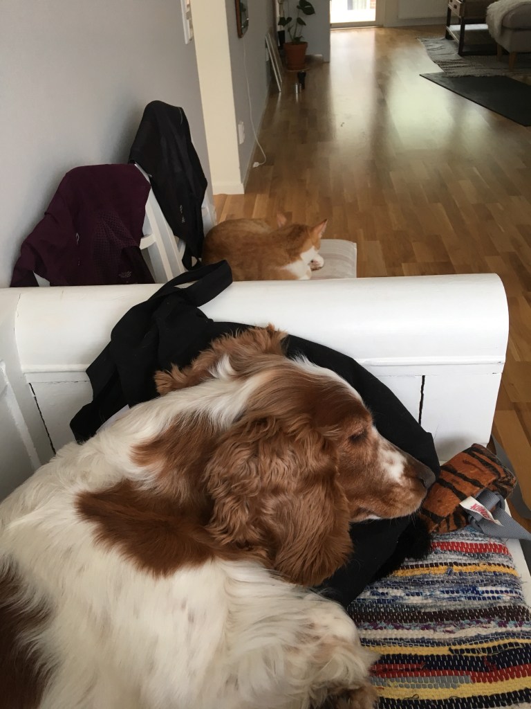 Jag är hundvakt i helgen åt Layla och har därför suttit hemma idag och jobbat. Vilken lyx! Vaknade med hund och en katt i sängen och en liten gosedjursråtta som nån av dem hämtat dit också. Kokade kaffe och rostade mackor och satte mig vid datorn. Superfin solig vinterdag utanför fönstret och jag njöt på Laylas raster utomhus och vips var det dags för lunch och den tog vi på balkongen!