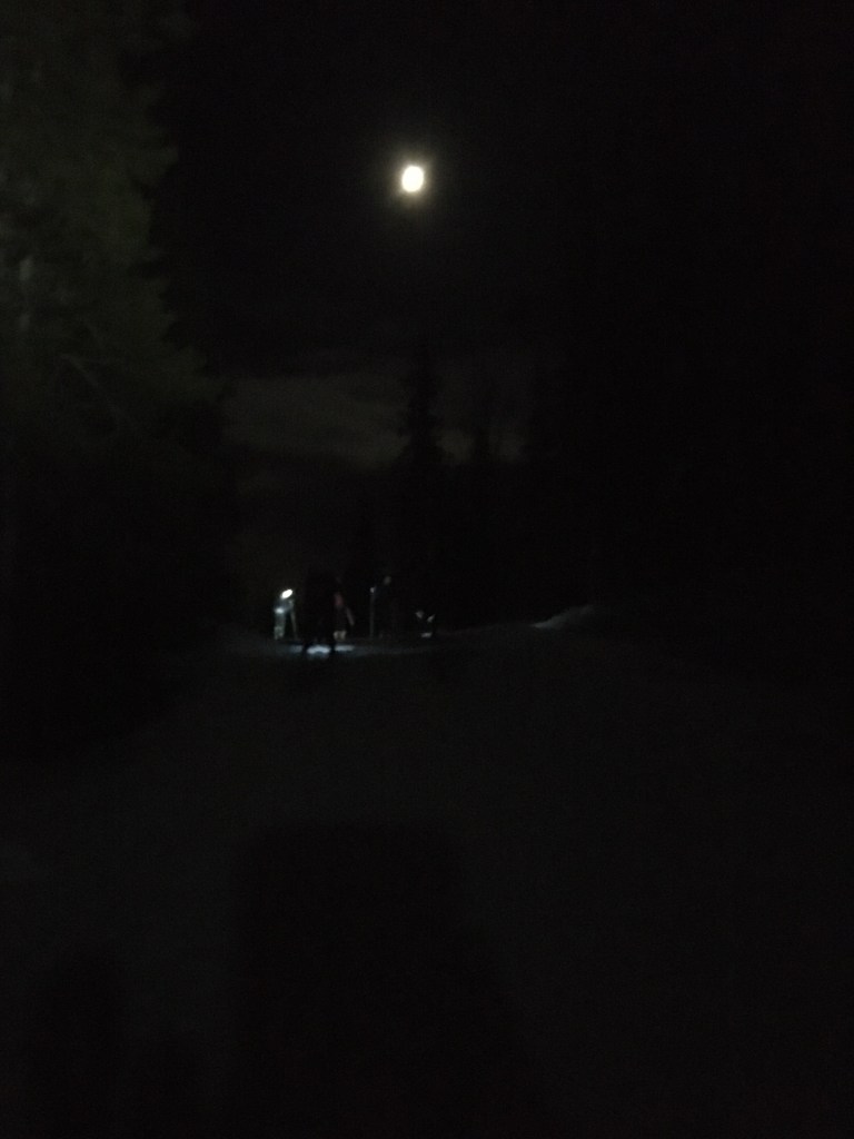 På lördagkväll hade vi dock det nästan bästa passet någonsin i åtminstone min Saxnäshistoria. Några föreslog en tur till en stuga som ligger längs med spåret och vi värmde glögg och tog med oss i lugnt tempo eftermiddagen, perfekt att mota matkoman med. När vi kom fram hade de tänt en eld och vi drack glögg och åt pepparkakor inne i stugan medan kaminen sprakade. Alldeles stjärnklart och vi släckte pannlamporna och åkte i bara månljuset. Magiskt är bara förnamnet, det var vansinnigt underbart!