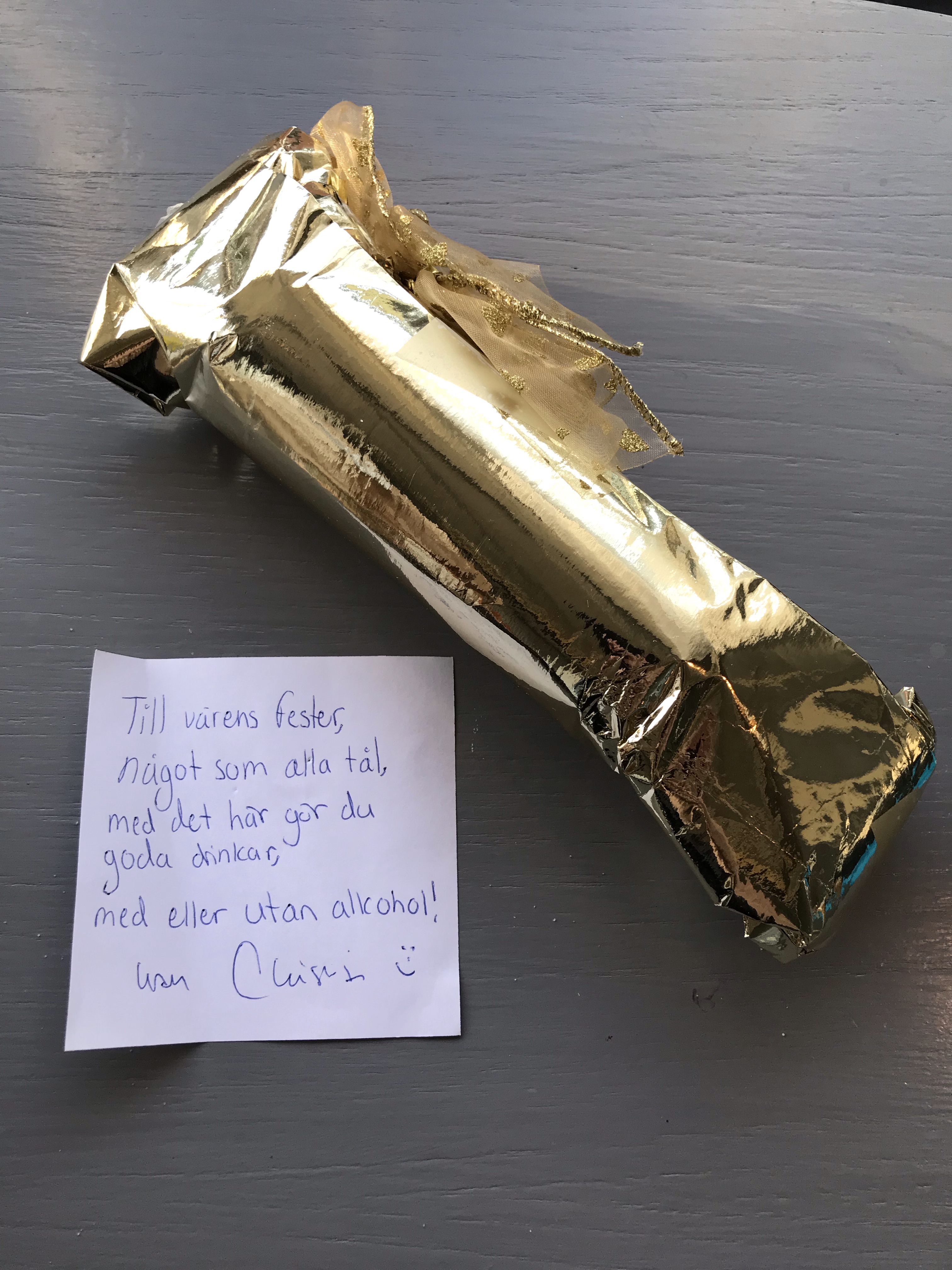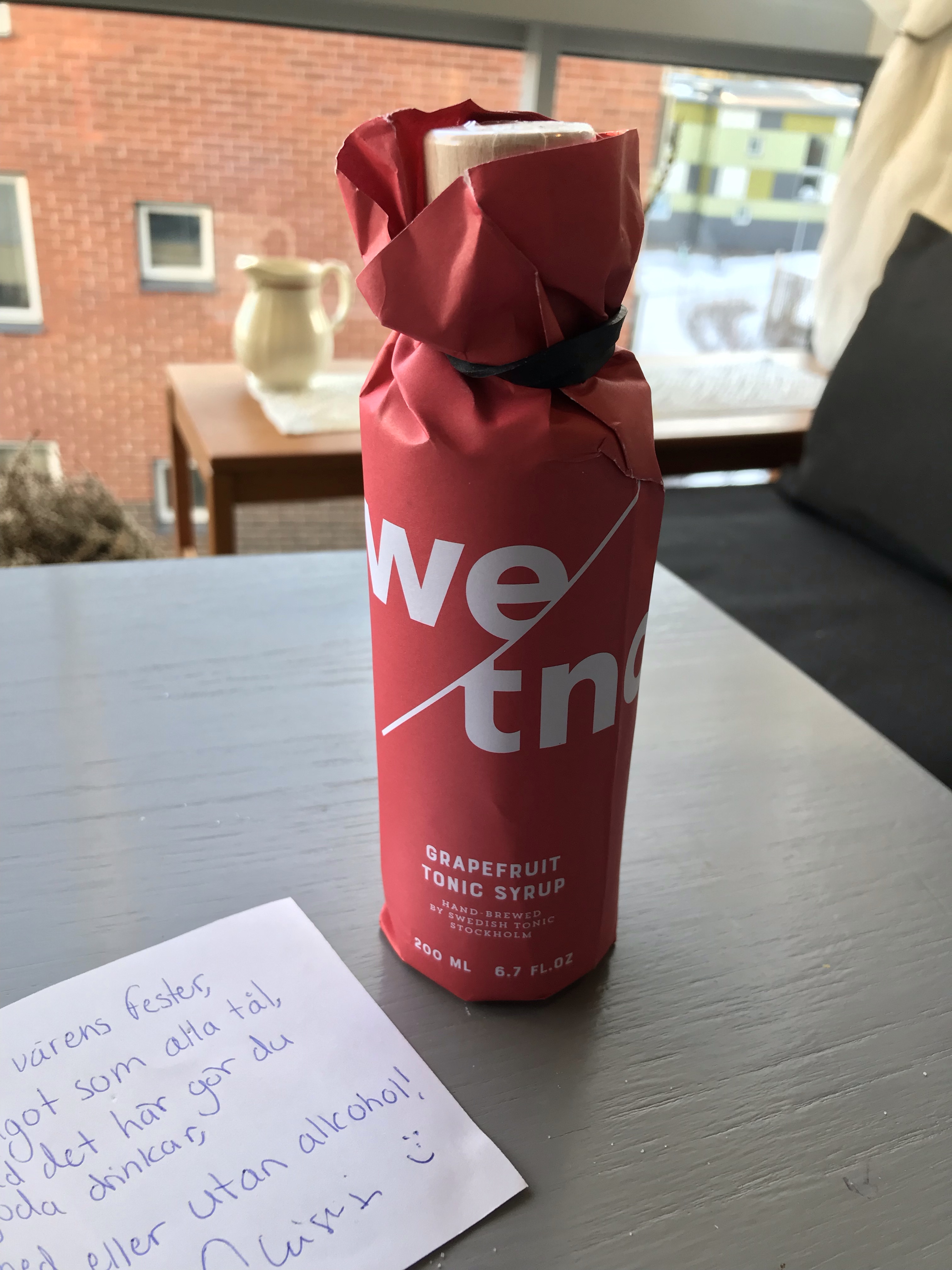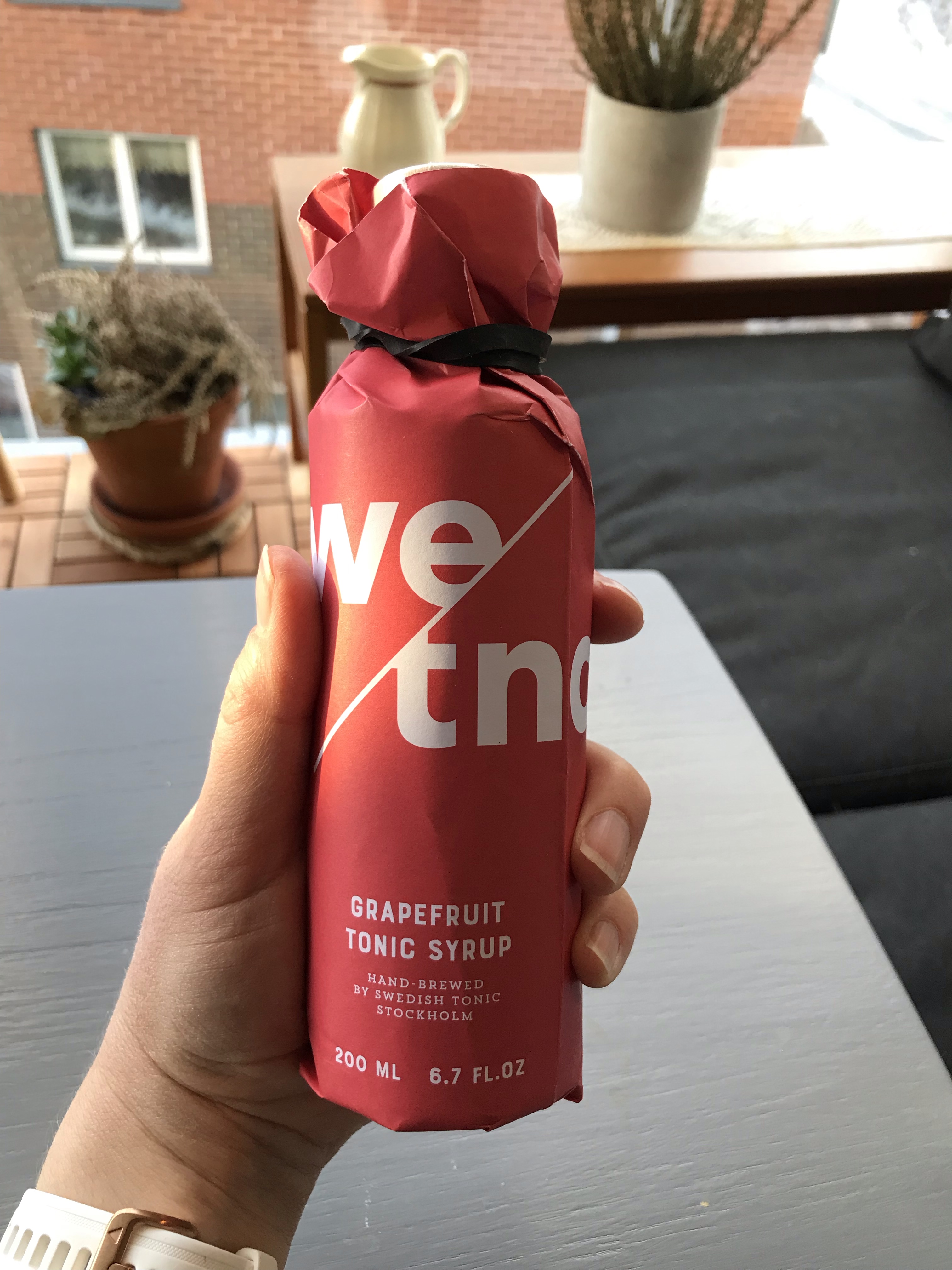 Öppnade och det var en tonic med grapefruktsmak från ett ställe i Stockholm, så typiskt bra present att skicka till nån som älskar sin balkong och nu också ser fram emot en låååång säsong på den utan resor. Jag är rätt svag för snygga förpackningar också så det kändes så himla lyxigt.