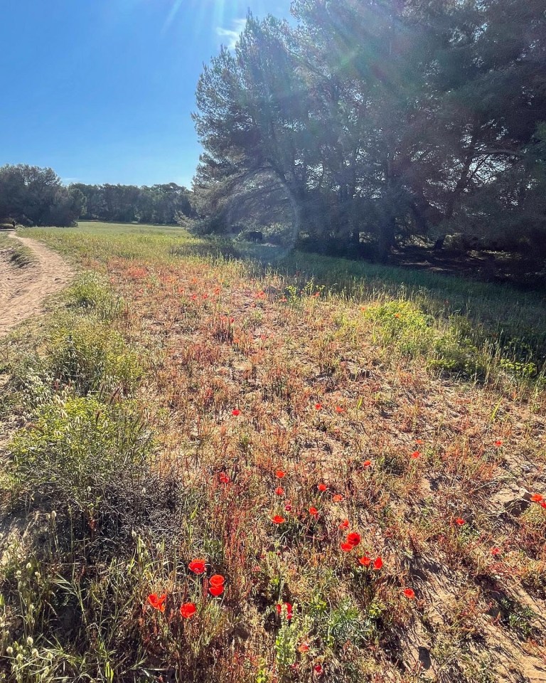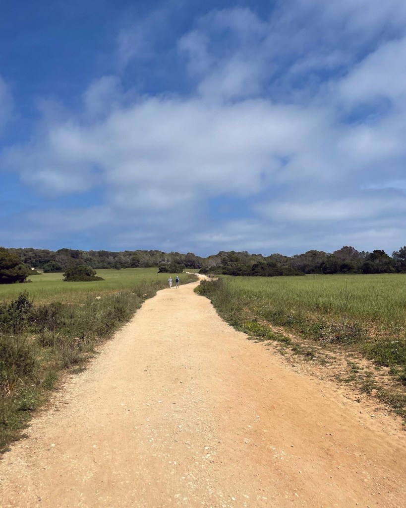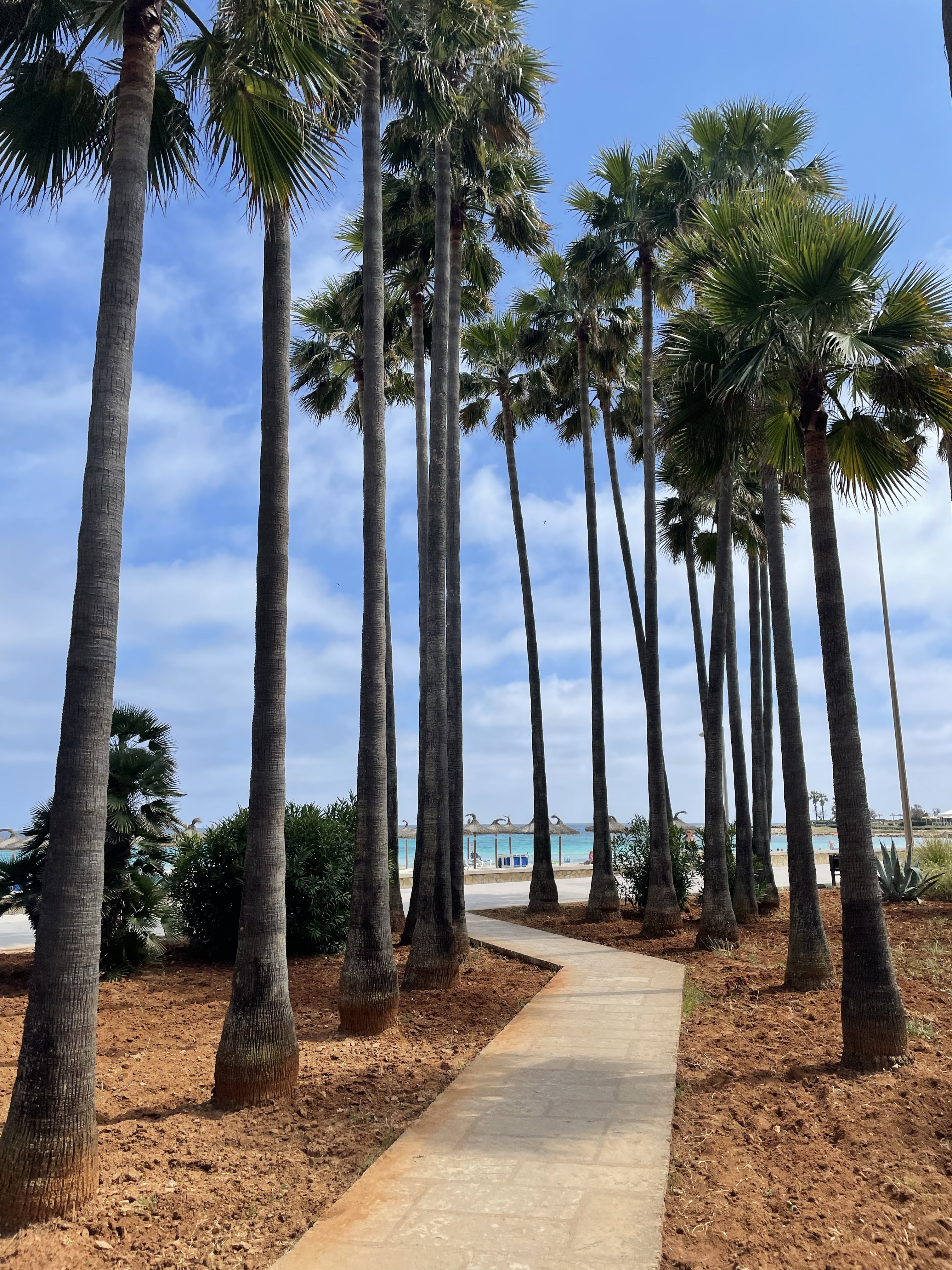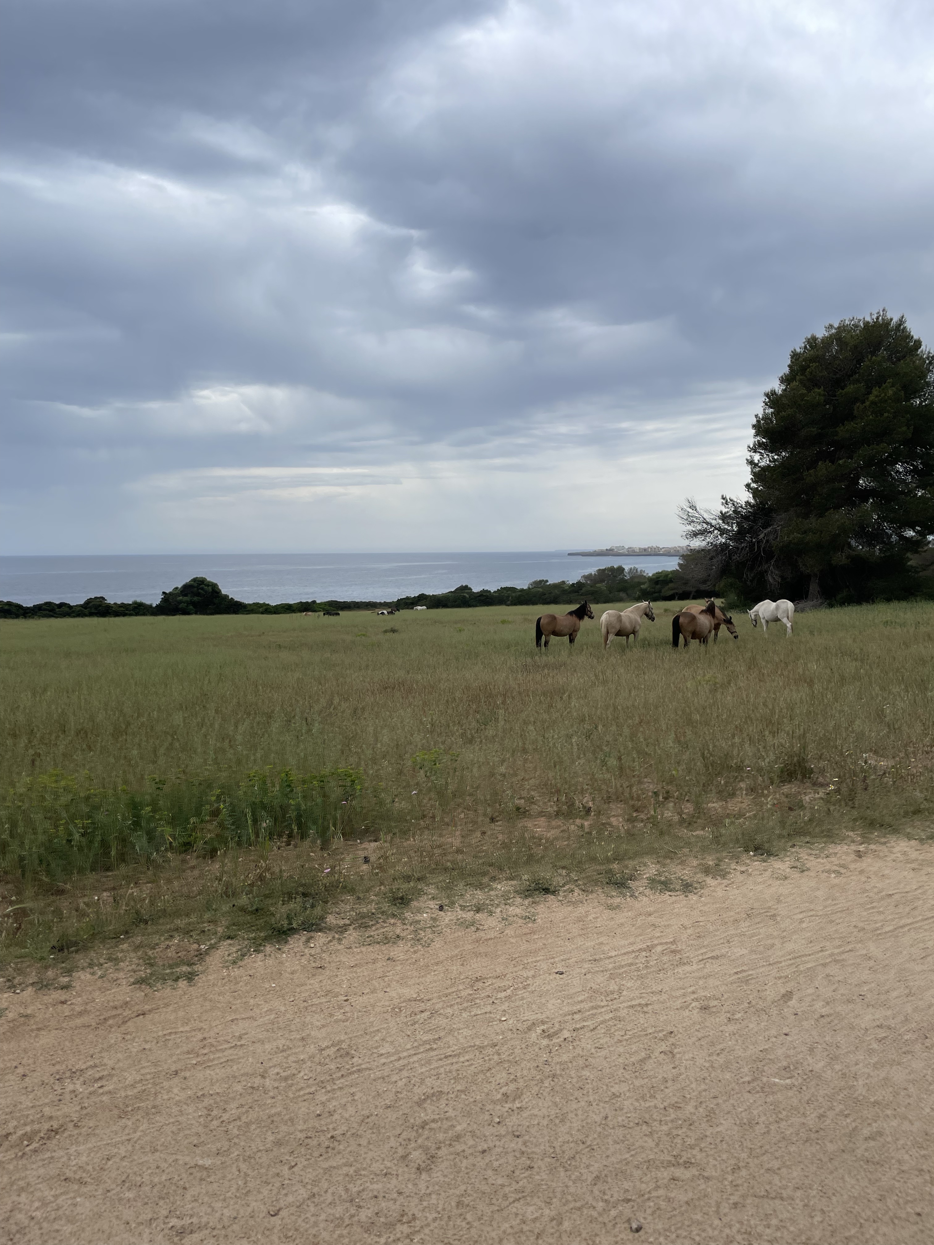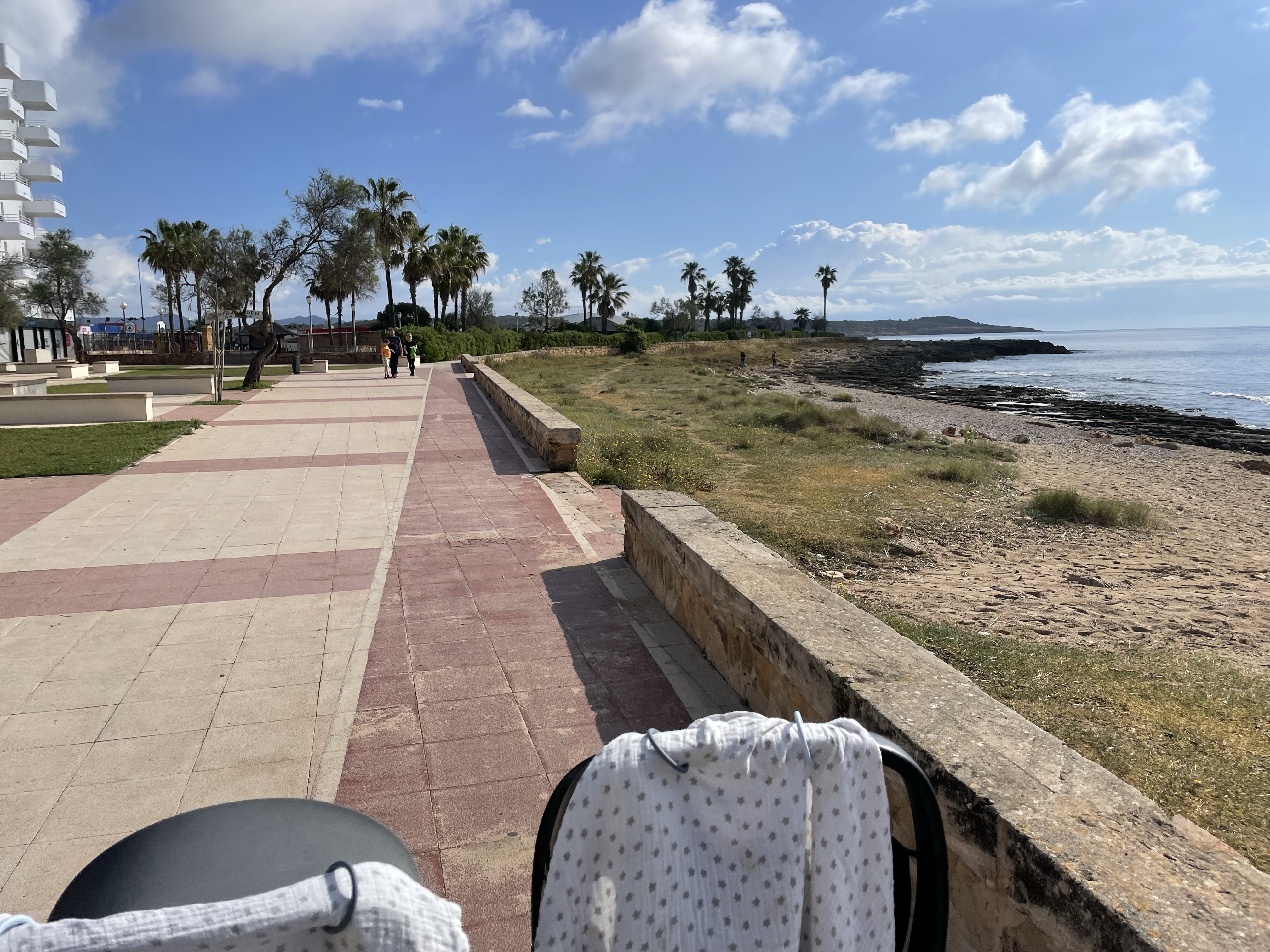 Förutom springer och badar så promenerar jag mycket med vagnen, de sover bäst i den och här intill finns en fin vandringsled/stig med avstickare och varianter som går längs havet, leder upp till ett utkikstorn med kanon och café eller till byn som ligger just norrut, Cala Millor. Vi har provat olika varianter varje dag och tagit oss längre och längre tills vi i regel kör fast med dubbelvagnen och får vända. Men det är underbart för mig som aldrig gillar springa på asfalt och än mindre nu när jag är i upptrappningsfas efter graviditeten. Sa Coma är lugnt, precis som alla recensioner vi läst, men det är ändå mycket turister och en rätt myllrande strandpromenad med några uteserveringar så det är häftigt och underbart att fyra minuter från hotellet där strandpromenaden tar slut är en plötsligt som ute på landet och tuppar gal och det är hästar överallt.