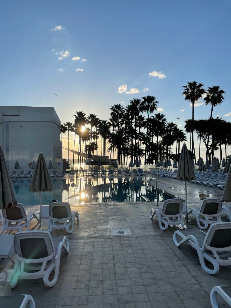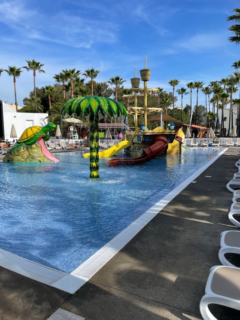 Vi bor på Hiphotels Mediterranean club, ett stort hotell som är riktigt barnvänligt, med bland annat piratpool och inomhuslekplats. Flera pooler, all inclusive (som vi inte har), barnklubb, träning för vuxna m.m. Det blir förhoppningsvis ett eget inlägg med en lite utförligare recension!