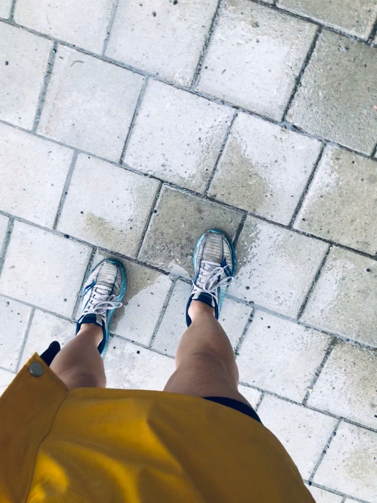 kontoret för admin-tisdaggårdagens outfit – efter simning i Holmsjön sportade jag den kanske kommande trendiga looken (?) med regnkappa, cykelbyxor och barfota i skorna. Känslan av sommar och träningsendorfiner och glädjen i att ha ett eget träningsgäng som tränar även om det regnar. Sammanfattat i en outfit.
