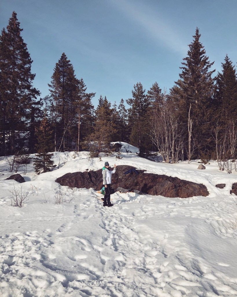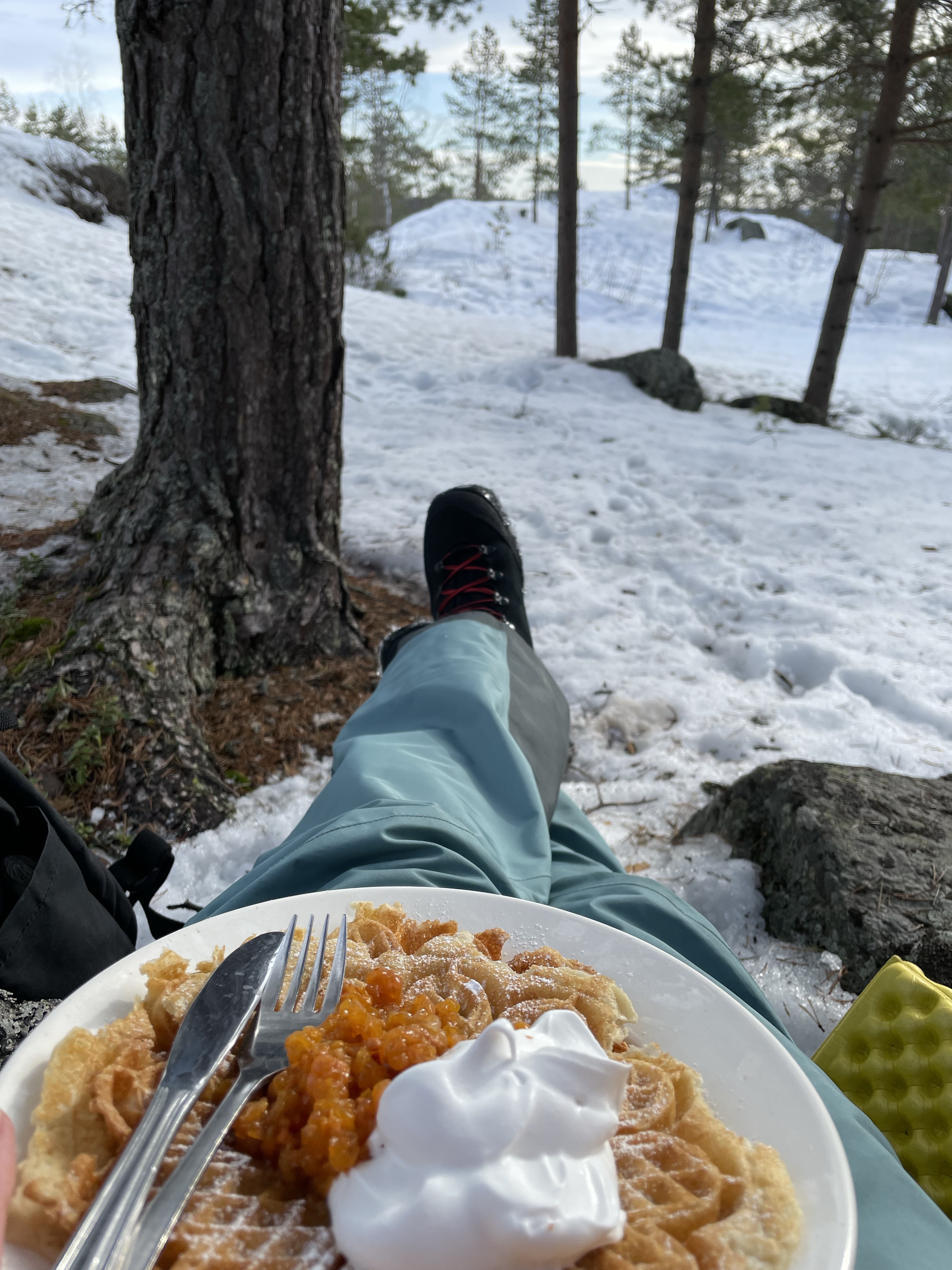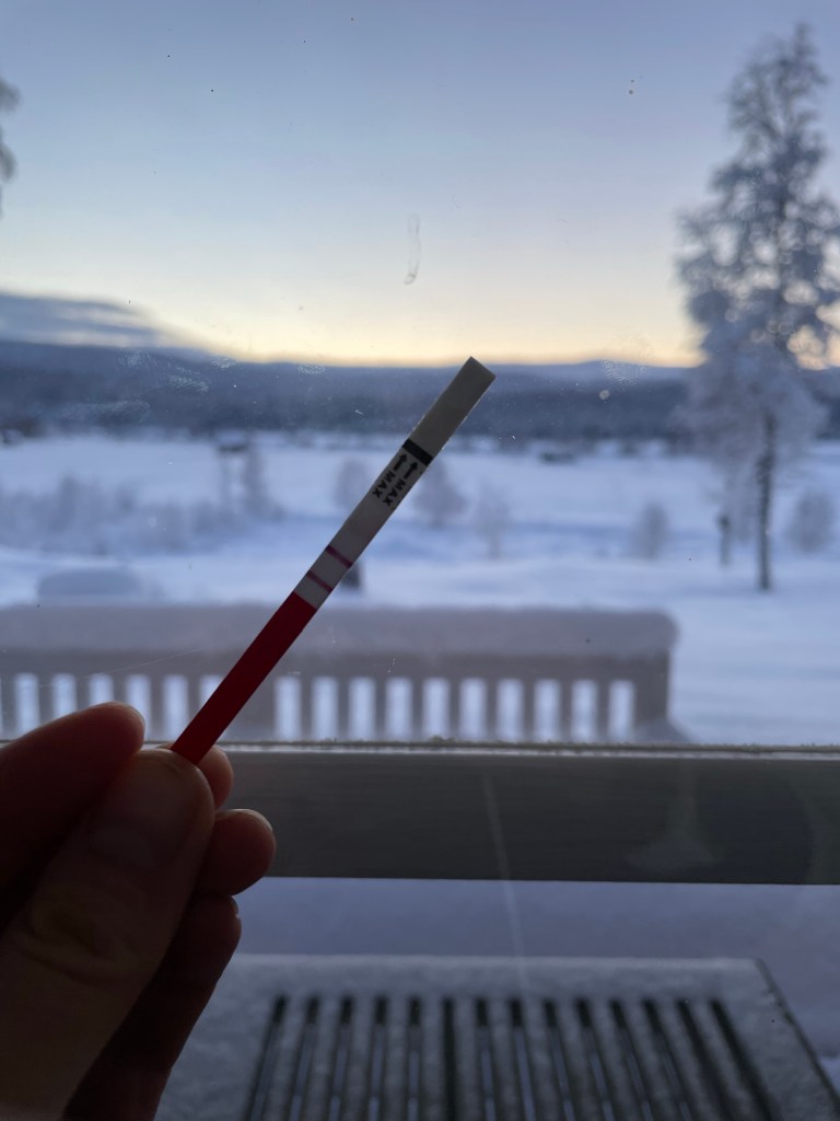 Vi åkte skidor och gjorde utflykter ändå, var i Talludden och lagade mat ute i -32 och det är nog det kallaste jag nånsin ätit ute i. Och ja, det var också här misstankarna började och ganska direkt blev konkretiserade. Jag hade klarat mig hela pandemin men till slut hade jag också två streck på en vit sticka… dock en annan typ av sticka. På min födelsedag! Vilken present.
