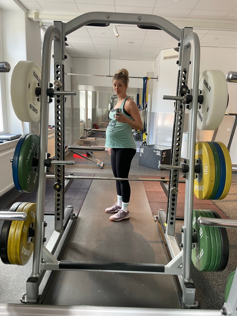 Förutom att jag inte sprang så kunde jag träna nästan som vanligt och jag fortsatte hålla klasser till v.28, då kände jag att det var dags att sluta. Här är magen 22 veckor men med två så ja, den syntes. På en del andra syns den ju knappt då, just över halvvägs in i graviditeten. För oss var det dock en bra tidpunkt, vi hade kommit lite längre och läget hade blivit stabilare och varje vecka var bonus.