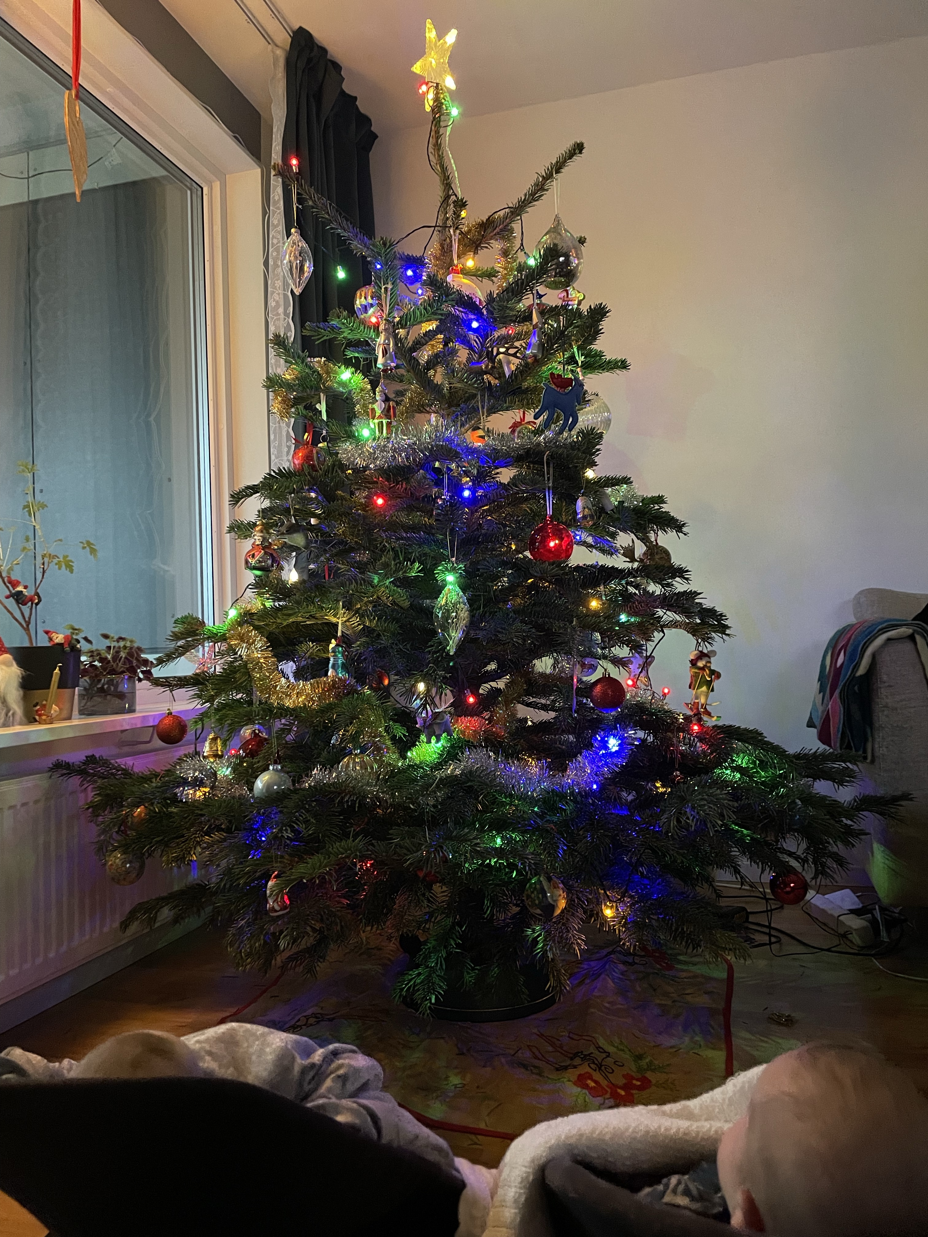 Så förflöt hösten, november bara försvann medan grabbarna växte, rutiner började ta form, sömnen kom och gick och vi tog in gran rekordtidigt och började julmysa. Och nu sitter jag här, har firat jul med familjen och nyår hemma med min egna lilla familj. Om en vecka fyller de ett halvår och idag ”fyller” de 4 månader korrigerat. Vi räknar inte så egentligen men jag tänker på det ibland, alltså hur gamla de skulle varit om de inte kommit för tidigt. I sin utveckling är de närmare sin riktiga ålder än den korrigerade, men det är bra ha i åtanke.